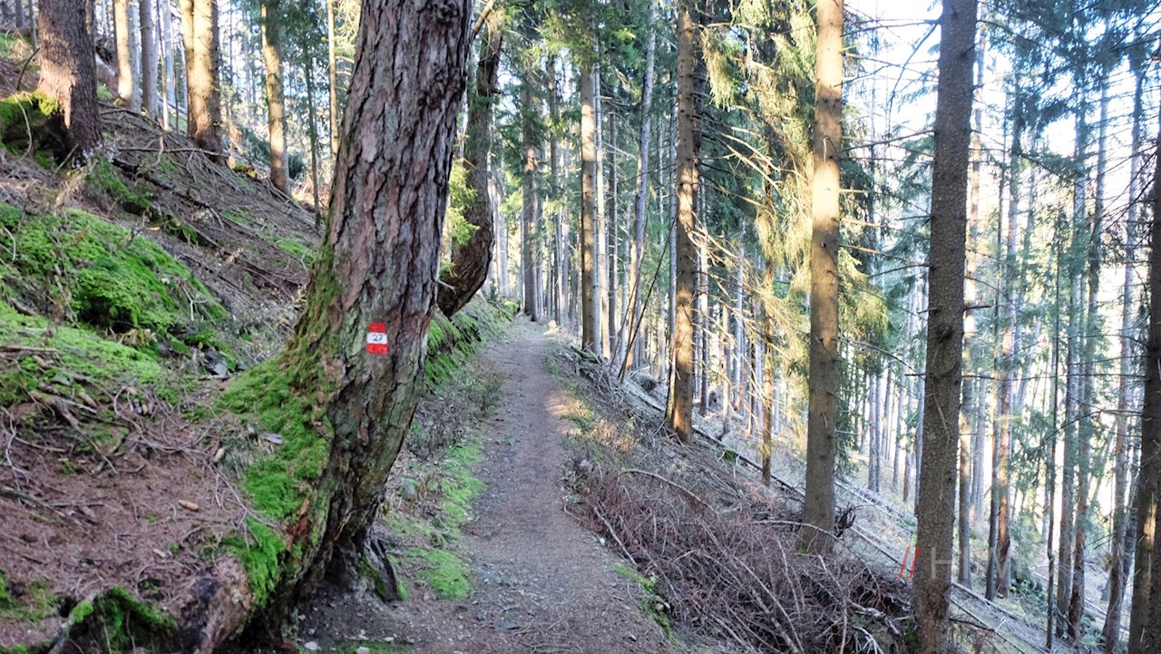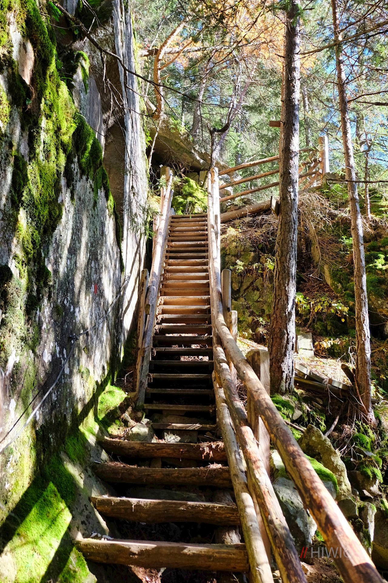 Vom oberen Wasserfall zweigt der Wanderweg Nr. 34 in Richtung Briol ab. Er führt im mitunter recht steilen, aber stets angenehmen Anstieg durch den Wald, über die schmalstufige Katzenleiter und durch aussichtstreiche Wiesen.