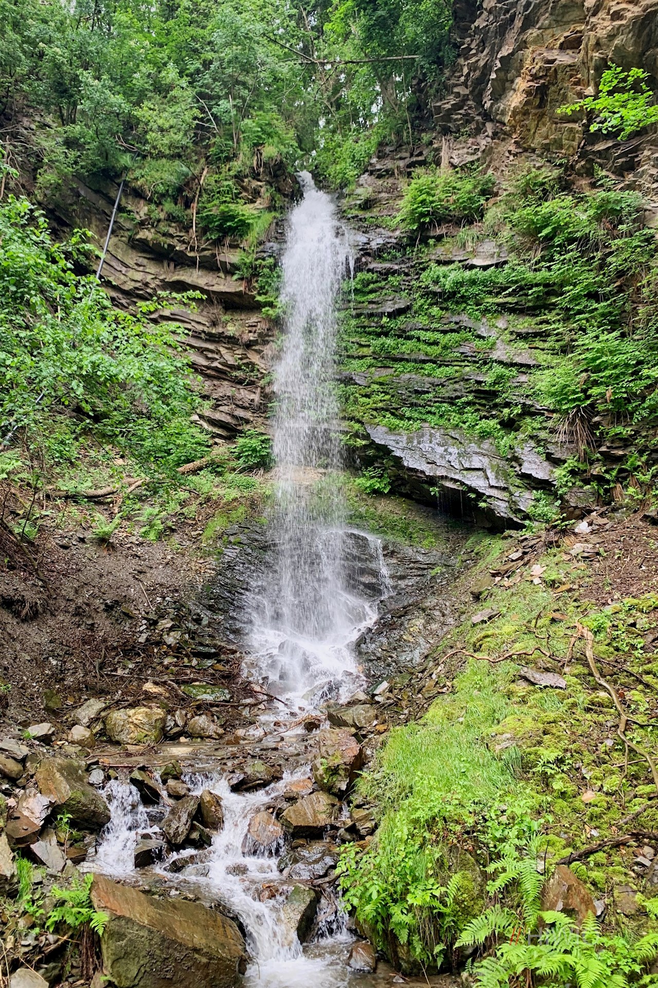 Von Klerant steigt der Weg Nr. 8 durch Wiesen und Wald zu einem weiteren Naturschauspiel ab: In kleinen Sprüngen fällt ein von Farn umrahmter Wasserfall über eine Felswand herab und umfängt den Wanderer mit feinem, wohltuendem Wasserstaub.