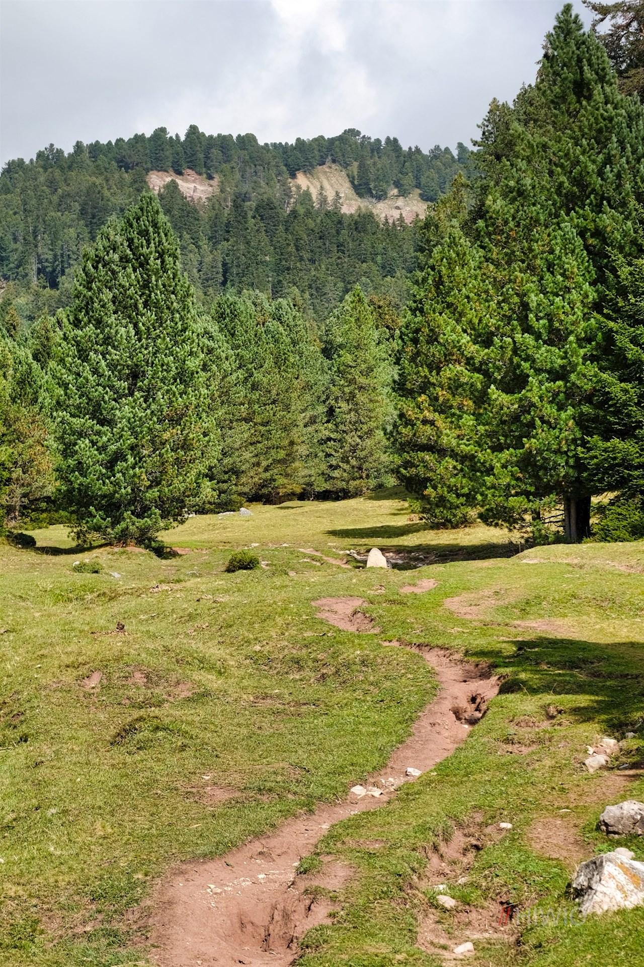Nach ungefähr einer Stunde quert er den lauschigen Annabach und gibt dabei erstmals den Blick auf die wuchtigen Felswände der Seceda frei. Vor dieser Kulisse steigt der liebevoll angelegte Weg zur oberen Waldgrenze an, hinter der sich die malerischen Almwiesen der Innerraschötz ausdehnen.