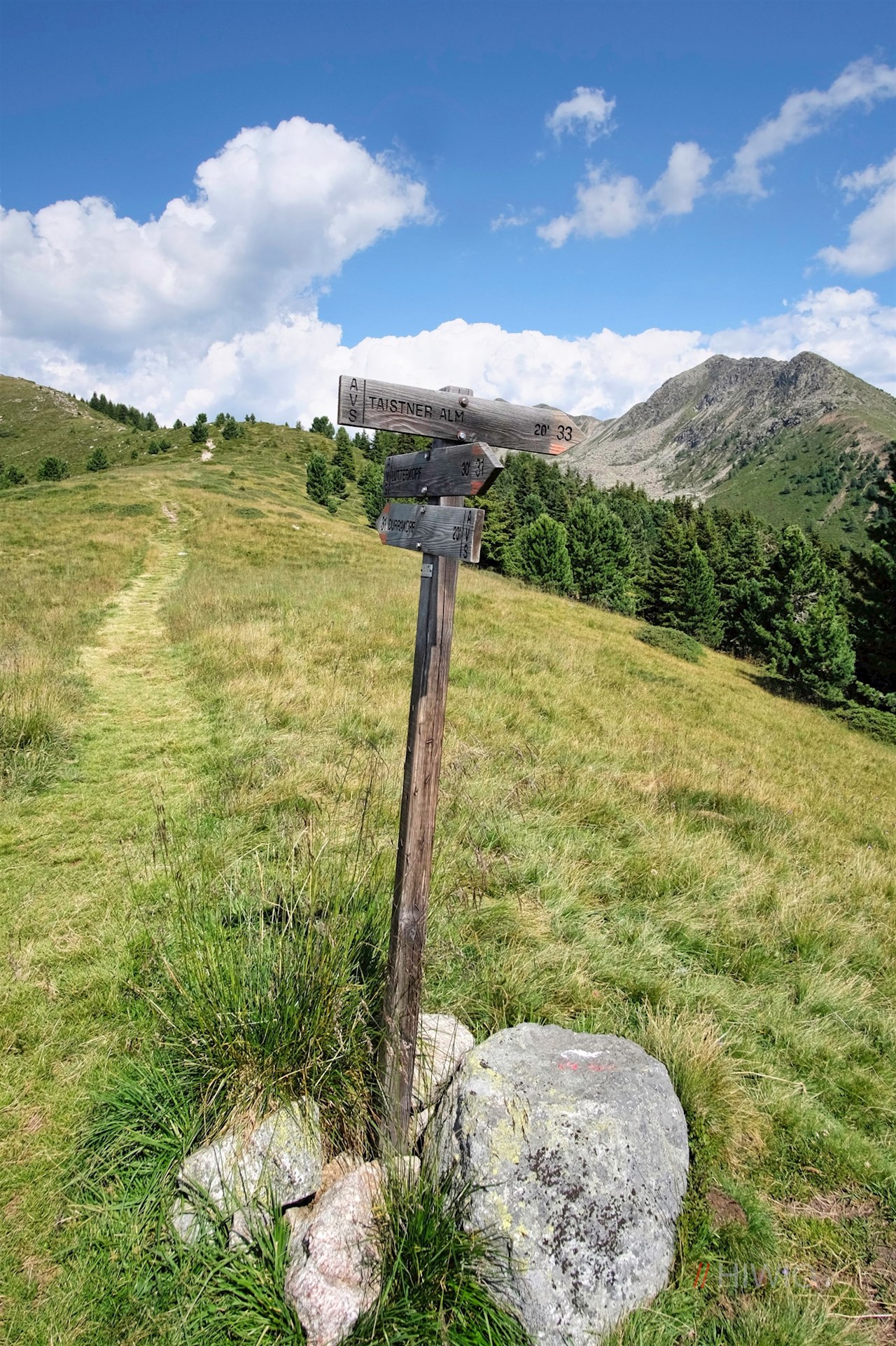 Von der Taistner Alm führt der breite Forstweg Nr. 38A zum Ausgangspunkt zurück.
