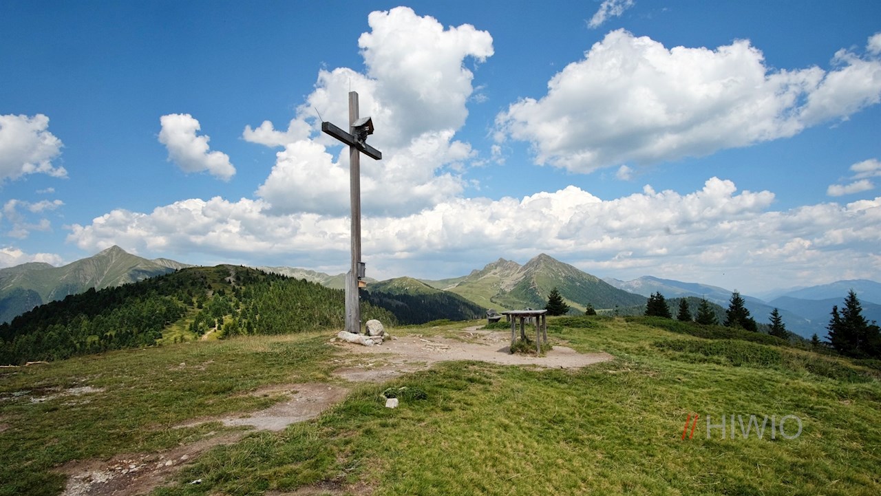 Auf 2.145 m Höhe entfaltet sich hier ein ungeahnt weitreichender Ausblick auf namhafte Dolomitengipfel wie den Sarlkofel, den Dürrenstein oder den Seekofel auf der einen und die über dem Antholzer Tal aufragende Bergwelt mit dem nahen Rammelstein auf der anderen Seite.