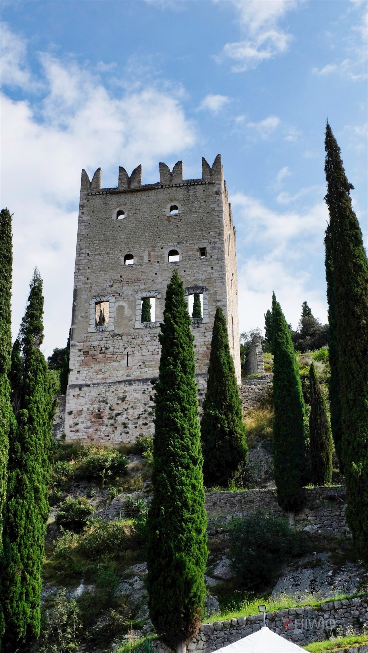 Die höher gelegene, von einer Ringmauer umfriedete Torre Renghera ist der älteste Teil der Burganlage. Sie geht auf den Beginn des 6. Jahrhunderts zurück: In den unsicheren und stürmischen Zeiten der Völkerwanderung hatten die Goten hier eine Fluchtburg erbaut.