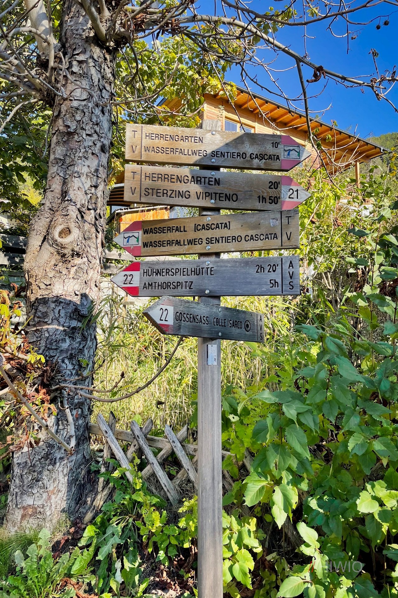 Der Wegnummer 21 in Richtung Sterzing folgend, führt die Wanderung zunächst kurz die Brennerstraße hoch, von der wenig später der anfangs asphaltierte Wanderweg rechts abzweigt.