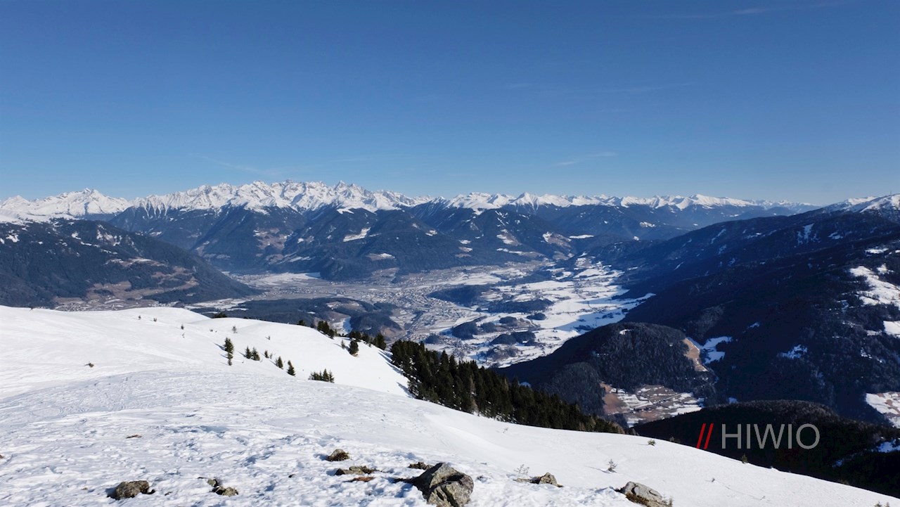 Bereits während des Anstiegs entfalten sich malerische Ausblicke, die auf dem 2.190 m hohen Campill sogar noch übertroffen werden: Während sich zu unserer Linken die Rieserfernergruppe und die Zillertaler Alpen erheben, reiht sich zu unserer Rechten ein namhafter Dolomitengipfel an den anderen. Zu unseren Füßen dehnt sich indes der Brunecker Talkessel aus.