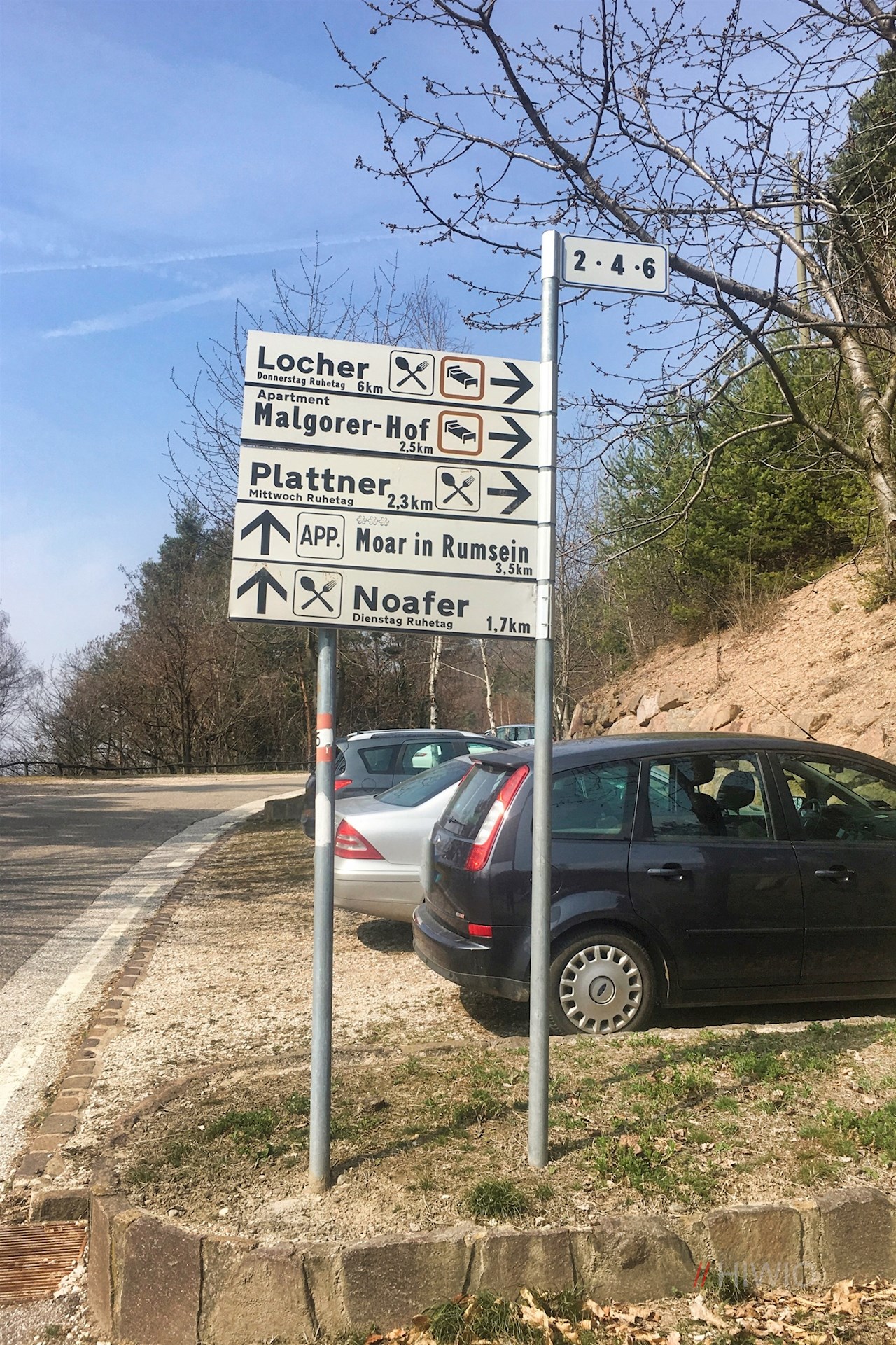 Gestärkt treten wir den Rückweg nach Glaning an. Den Parkplatz, unseren Ausgangspunkt der Wanderung, erreichen wir nach cirka 20 Geh-Minuten.