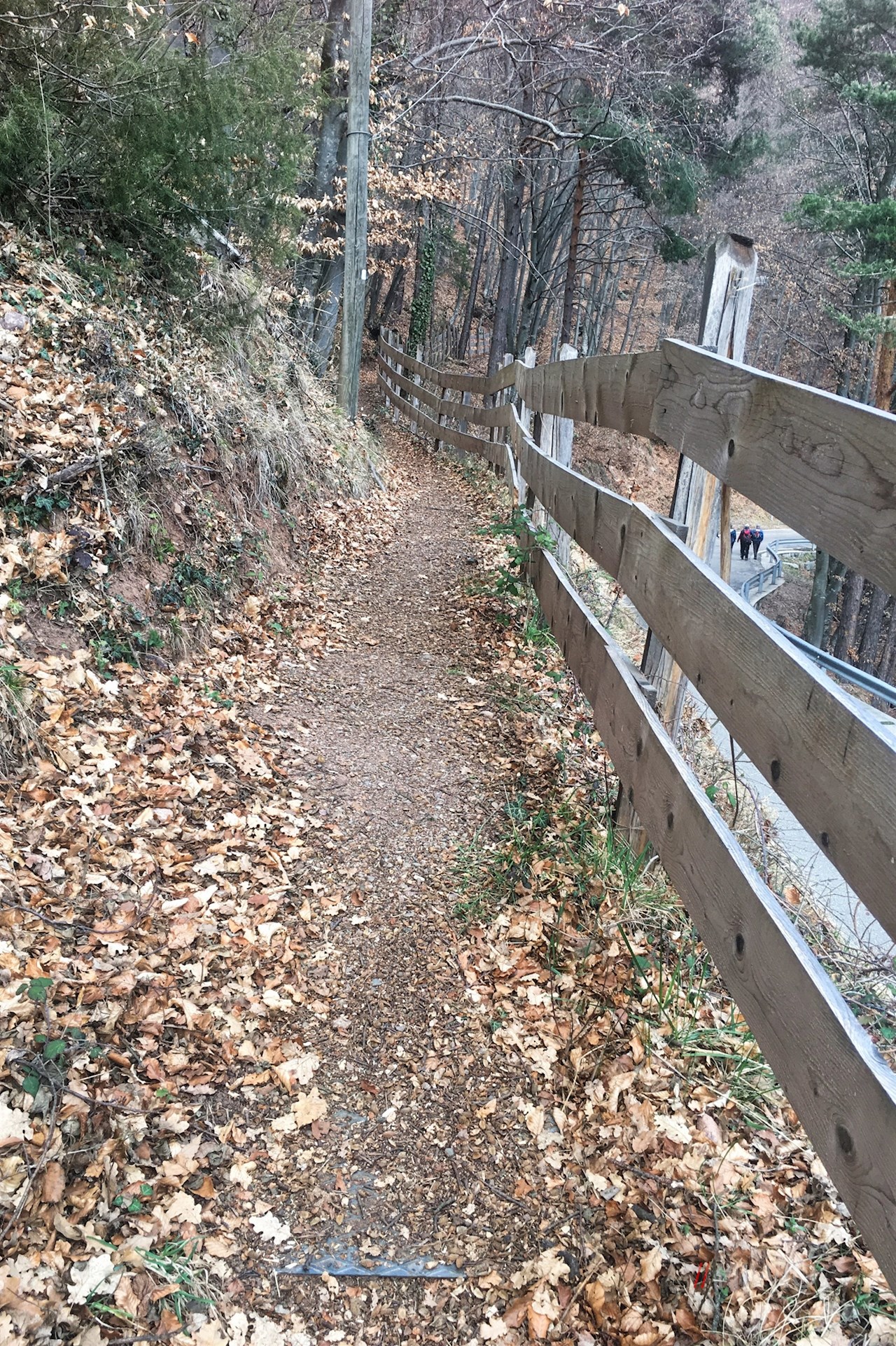 Mit der Burgruine im Blick und der Legende in Gedanken wandern wir weiter über den Burgenweg in Richtung Noafer-Hof. Im hofeigenen Wildgehege tummeln sich mehrere Hirsche, die hin und wieder aufschauen und neugierig die vorbeilaufenden Wanderer beobachten. Der Noafer-Hof empfängt seine Gäste auf einer großen Sonnenterrasse und bietet eine gute Auswahl an regionalen Gerichten, selbstgemachten Fruchtsäften und Wein aus eigenem Anbau an. Der Hof ist zudem im Herbst ein beliebter Ort für das traditionelle Törggelen, bei dem Südtiroler Hausmannskost serviert und der Neue Wein ausgeschenkt wird.