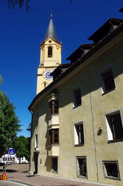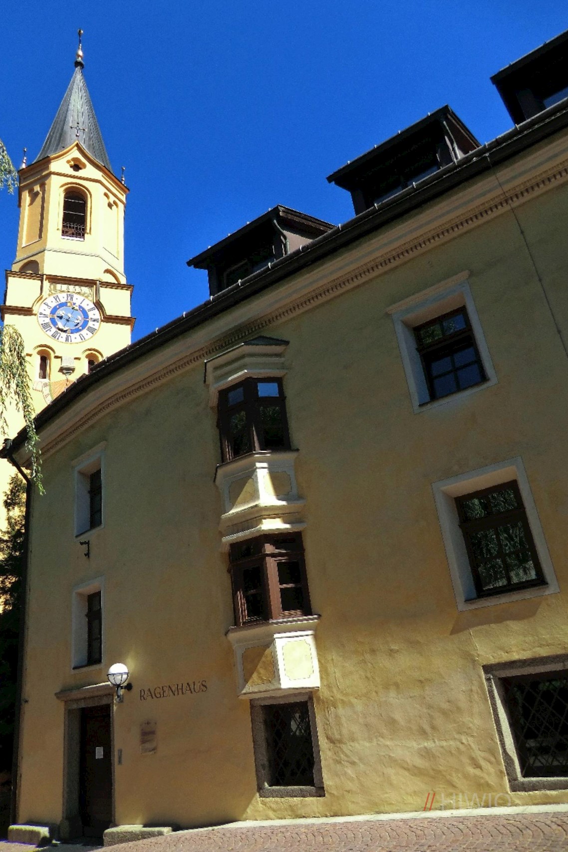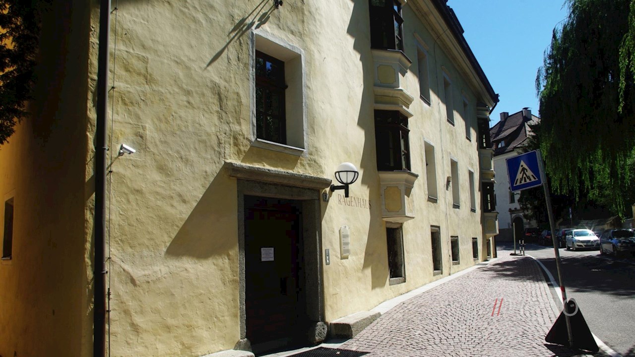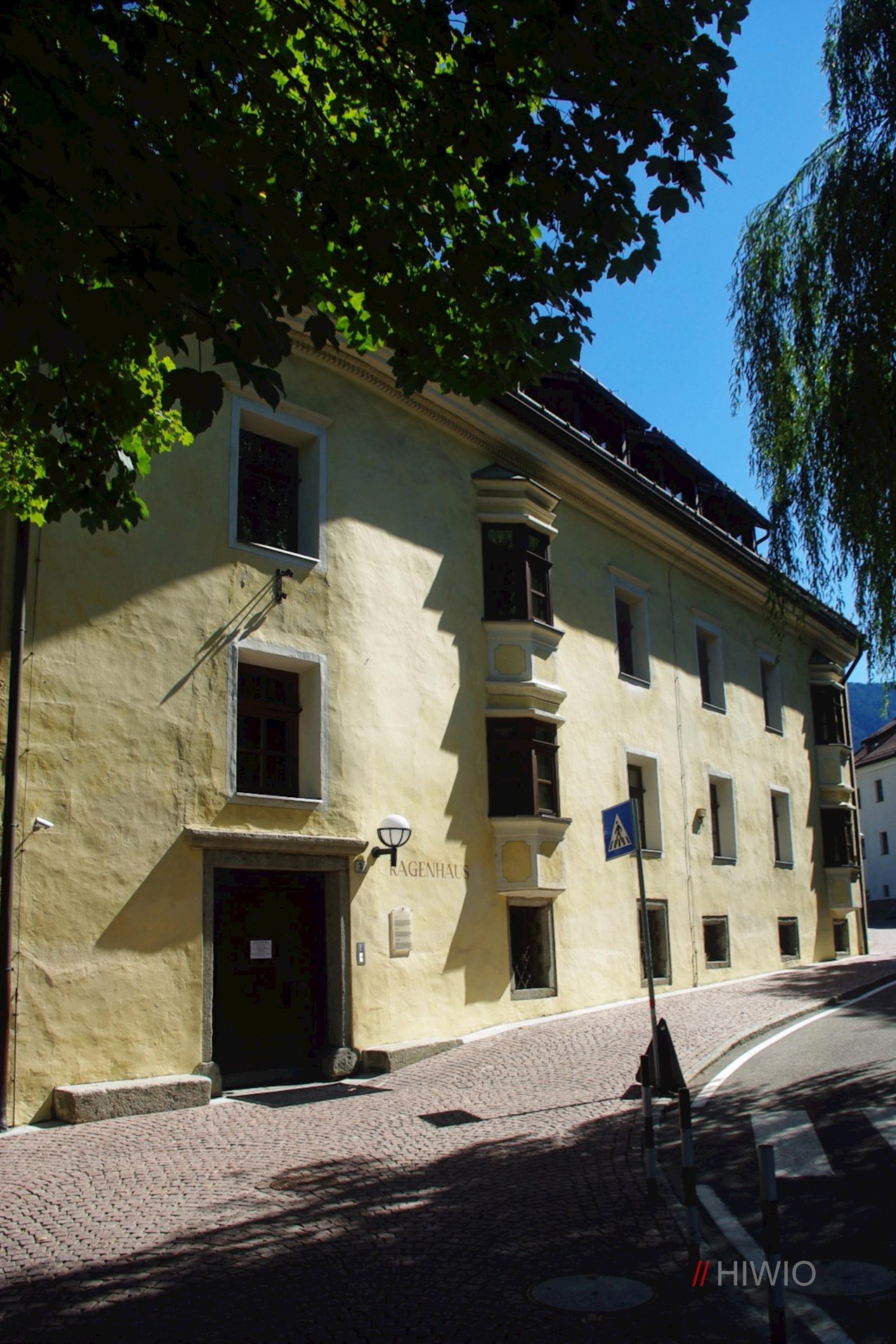 Das Ragenhaus nahe der Pfarrkirche zählt zu den ältesten und edelsten Häusern der Stadt. Einst Küchenmeierhof (1) des Brixner Bischofs, ging es später in den Besitz der Familie Kirchmayr über, die es zu einem ansehnlichen Ansitz ausbaute. Im 17. Jahrhundert wurde das Ragenhaus im Stil der Renaissance umgebaut und durch den pittoresken Innenhof erweitert. In der Mitte des 19. Jahrhunderts erwarb es die Stadt Bruneck, welche hier u. a. die „Kleinkinderbewahranstalt“, die (Schulhaus-)Kaserne und sozial bedürftige Familien unterbrachte.