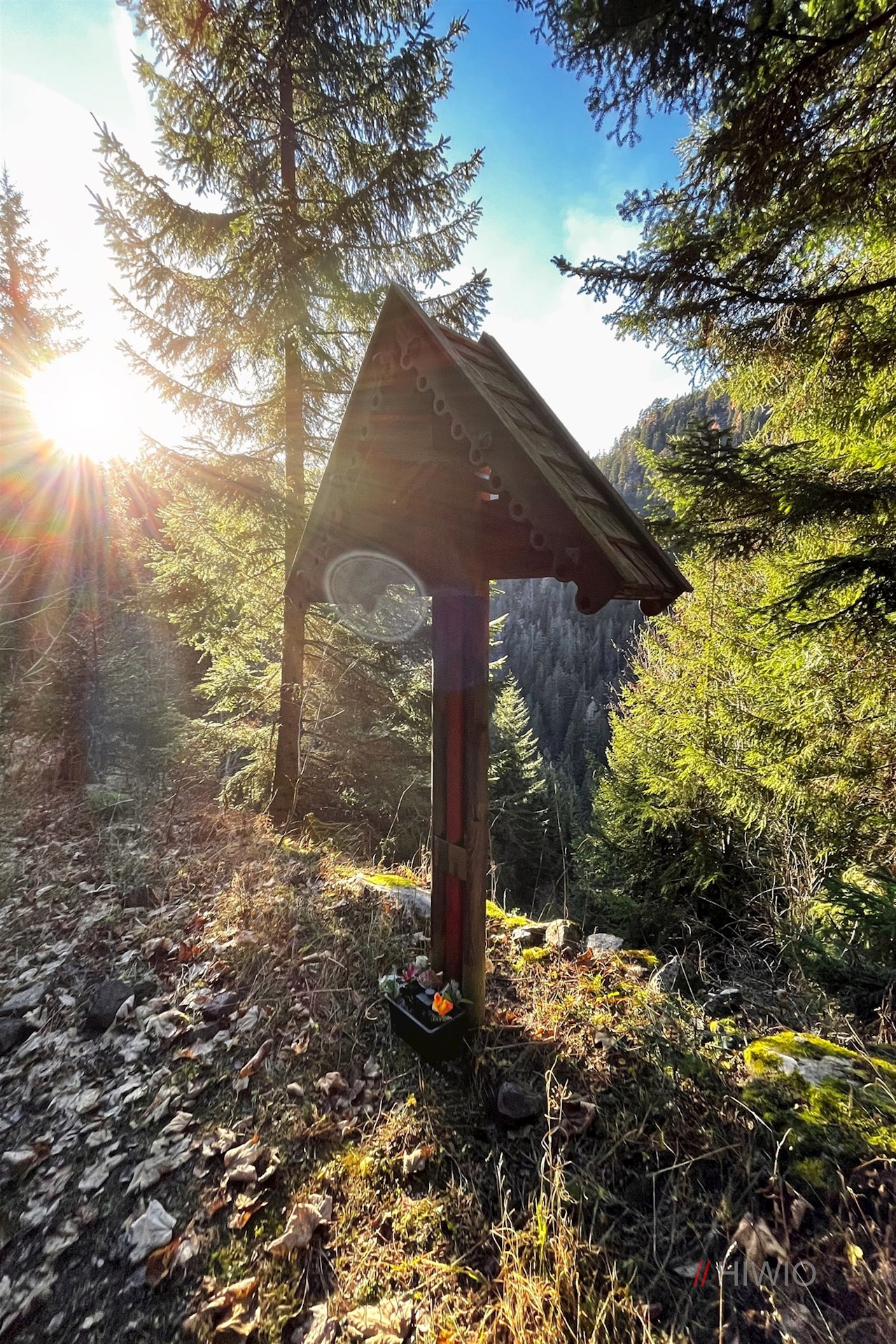 Dieser führt teils eben, teils im sanften Auf und Ab durch den stillen, schattenverheißenden Wald, der hie und da vom Zwitschern der Vögel erfüllt wird. Längs des Weges erzählen liebevoll angelegte Kreuzwegstationen den Leidensweg Christi nach.