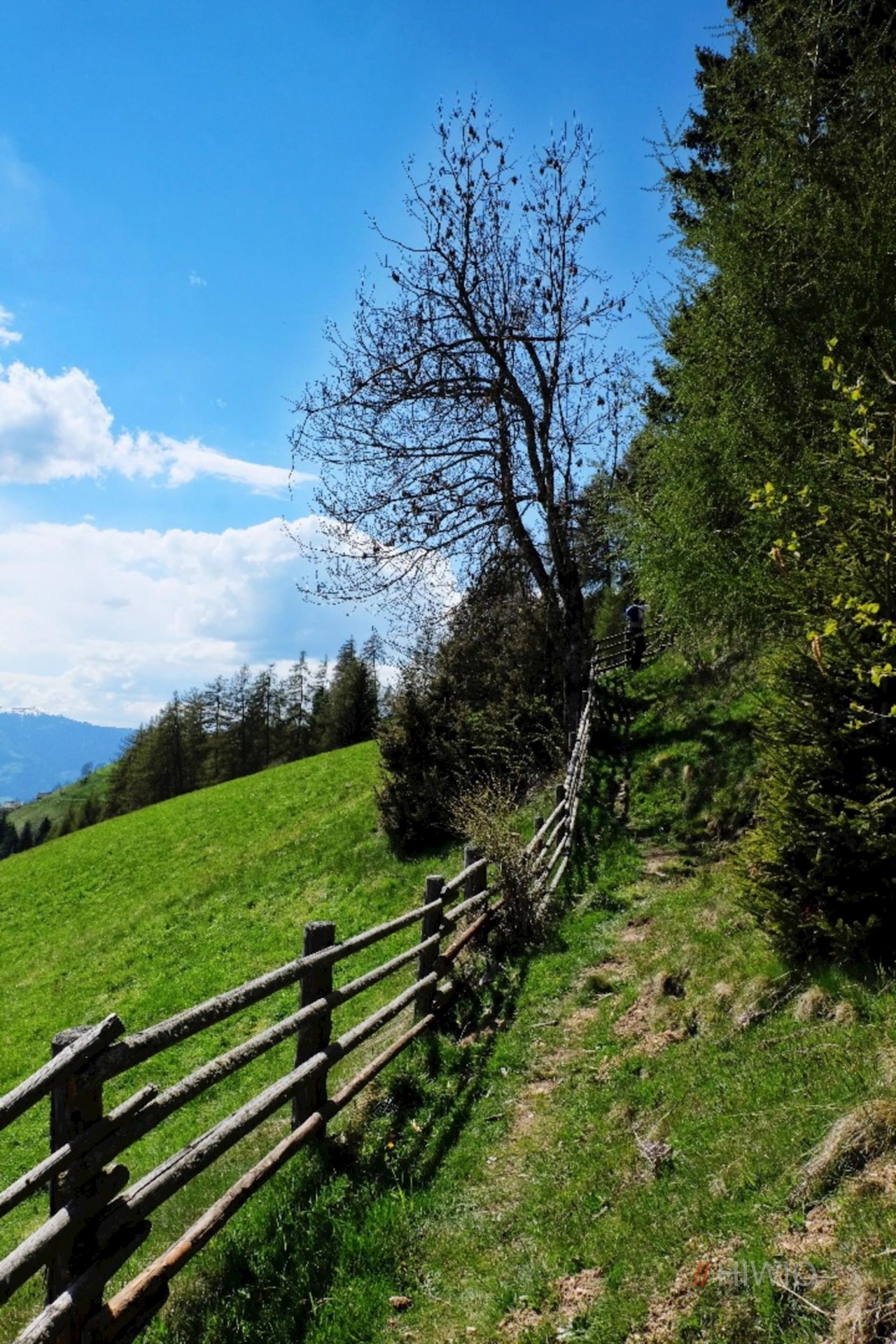 Am unteren Ende des Erdpyramidenfelds folgt man sodann dem Weg Nr. 1A nach rechts. Am Thalerhof geht dieser in eine Asphaltstraße über, die zum beschaulichen Weiler Platten hinabführt.