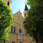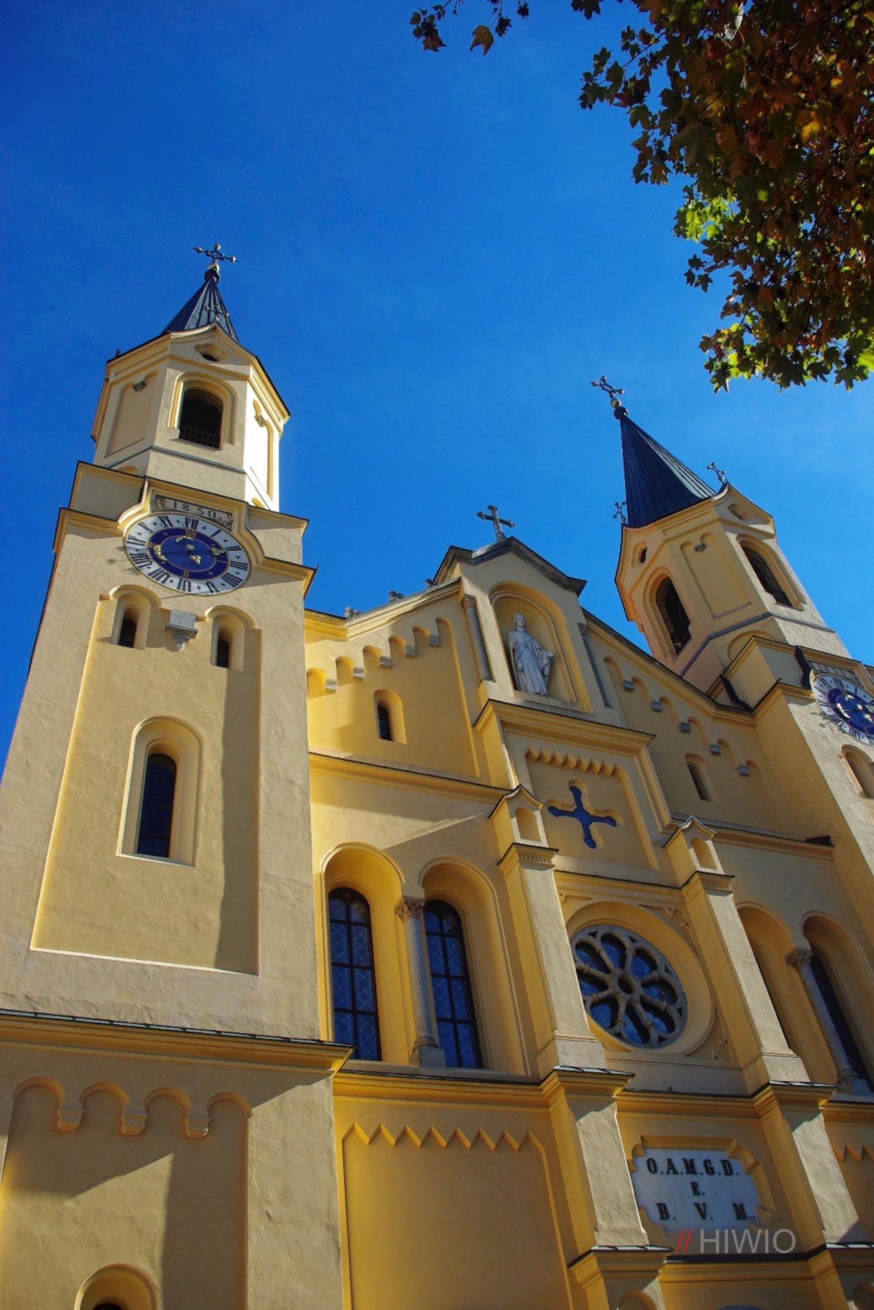 Die Buchstaben OAMGD E BVM über dem äußeren Mittelportal stehen für „Omnia ad maiorem gloriam Dei et beatae Virginis Mariae“, zu deutsch: „Alles zur größeren Ehre Gottes und der glückseligen Jungfrau Maria“.