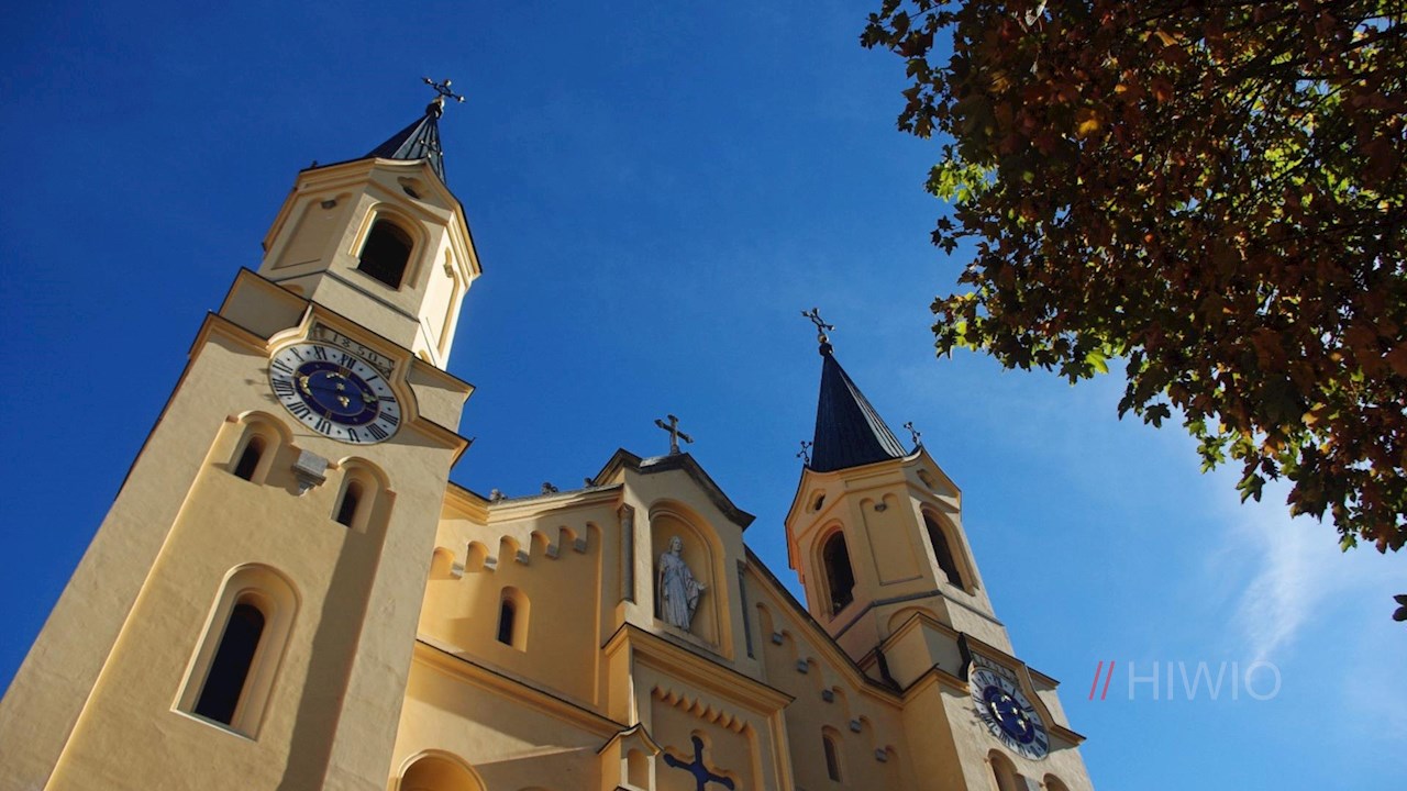 Gleichwohl die Pfarrkirche im neuromanischen Stil erbaut wurde, weist die Raumgestaltung klassizistische und barocke Züge auf. Kunsthistorisch interessant sind insbesondere die vom Tiroler Maler Georg Mader (1824-1881) geschaffenen Gewölbefresken sowie der sog. „Pacher-Christus“ am Taufbecken, der im 16. Jh. nach dem Vorbild des großen Brunecker Meisters Michael Pacher gefertigt wurde.