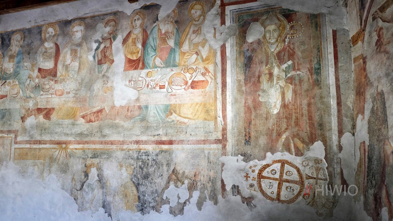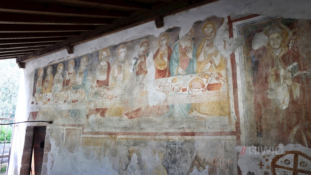 Außerhalb der Stadt gelegen, beherbergte es einst Pilger und Reisende. Besonders interessant sind die schmucken Fresken, die auf den Beginn des 14. Jahrhunderts zurückgehen und biblische Szenen zeigen. Insbesondere aber sticht die Darstellung des letzten Abendmahls ins Auge: Bei näherer Betrachtung erblickt man einzelne Flussgarnelen, die lange Zeit die Wasser der Sarca bewohnten. Dass sie Eingang in diese biblische Szene fanden, zeigt, wie sehr die damaligen Bürger sie wertschätzten.