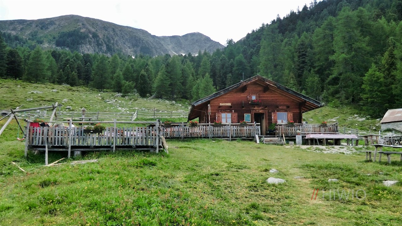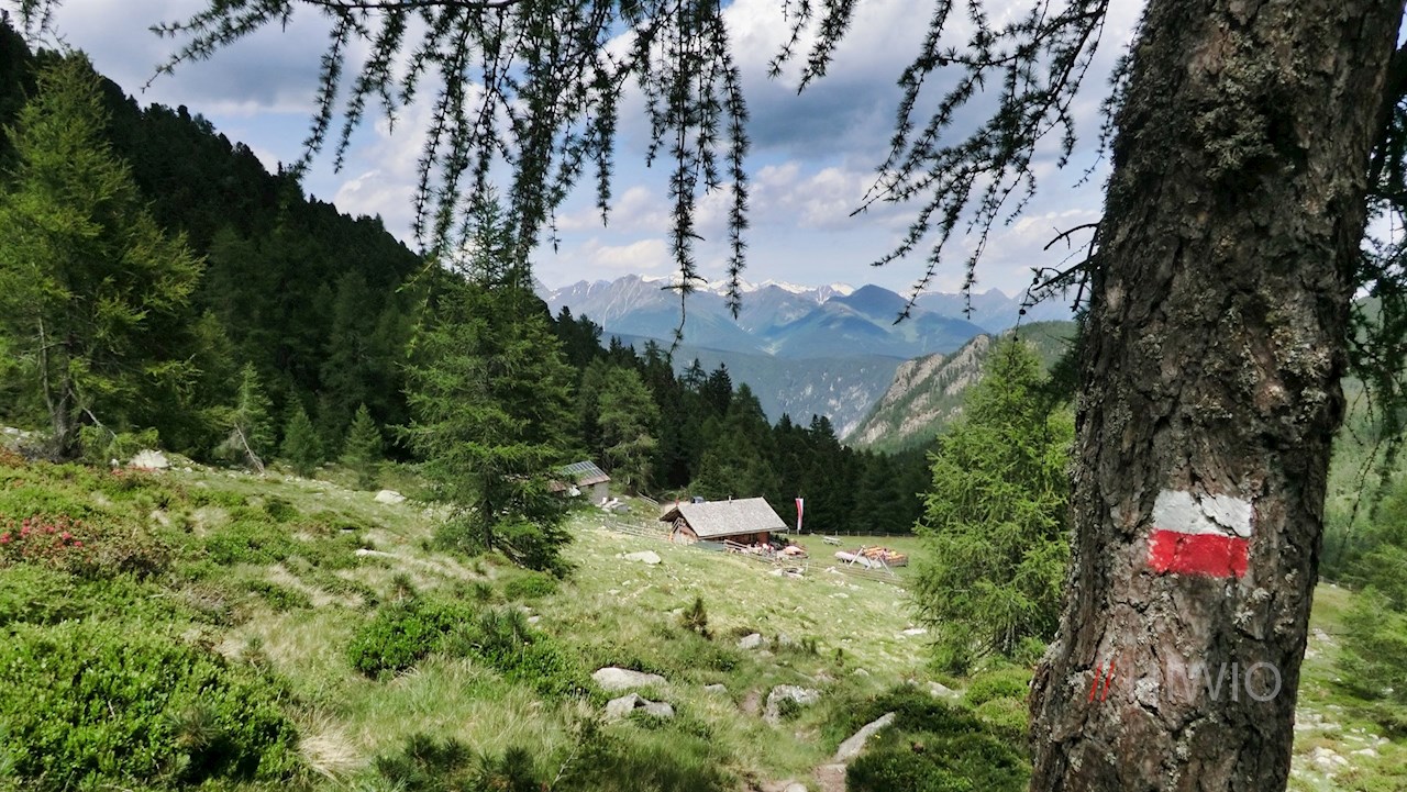 Mehrere Wege führen zur urigen Zirmaitalm, die zu Füßen der frei aufragenden Karspitze zur genüsslichen Einkehr einlädt. Diese Route führt von Schalders zu dieser idyllisch gelegenen Almhütte.