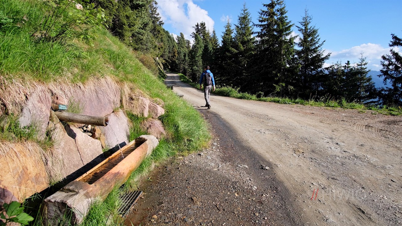 Ausgangspunkt ist der Parkplatz Skihütte (Palmschoß) bei Afers. Vom Parkplatz steigt der breite Weg Nr. 8 sanft durch lichte Waldstücke und malerische Bergwiesen zur Schatzerhütte an. Die beliebte Almhütte ist bekannt für die erlesenen, liebevoll zubereiteten Gerichte, die vor der malerischen Kulisse der gegenüberliegenden Dolomiten serviert werden.