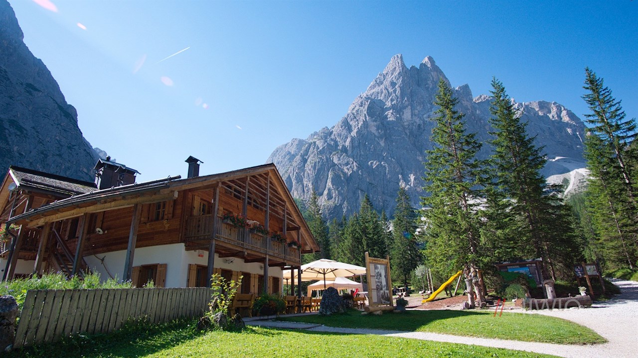 Hier nimmt der Wanderweg Nr. 102 in Richtung Zsigmondyhütte seinen Anfang. Er schlängelt sich nahezu eben durch das licht bewaldete Fischleintal zur bezaubernden, von imposanten Felsriesen umrahmten Talschlusshütte.
