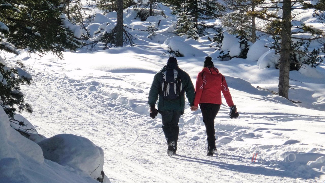 Die gemütliche Winterwanderung zur Dreischusterhütte nimmt auf dem zwischen Innichen und Sexten gelegenen Wanderparkplatz am Eingang ins Innerfeldtal ihren Anfang.