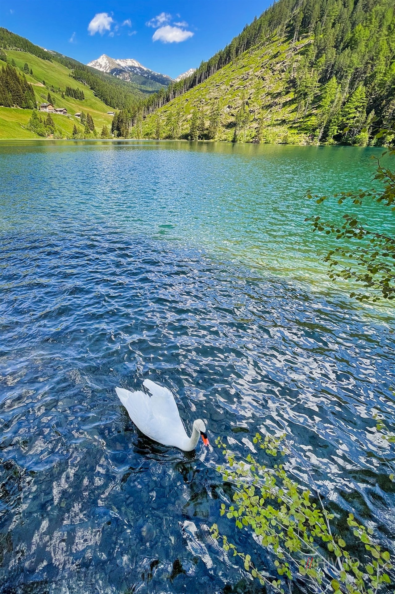 Der Durnholzer See bei Durnholz ist nicht nur der größte See des Sarntals, sondern zählt mit der Kirche St. Nikolaus und den dahinter liegenden Berghöfen auch zu den bekanntesten Fotomotiven des urigen Tals. Um dieses schimmernde, von Wald und Wiesenhängen umrahmte Kleinod führt eine schöne Wanderung, die auch mit Kindern und einem geländetauglichen Kinderwagen unternommen werden kann.