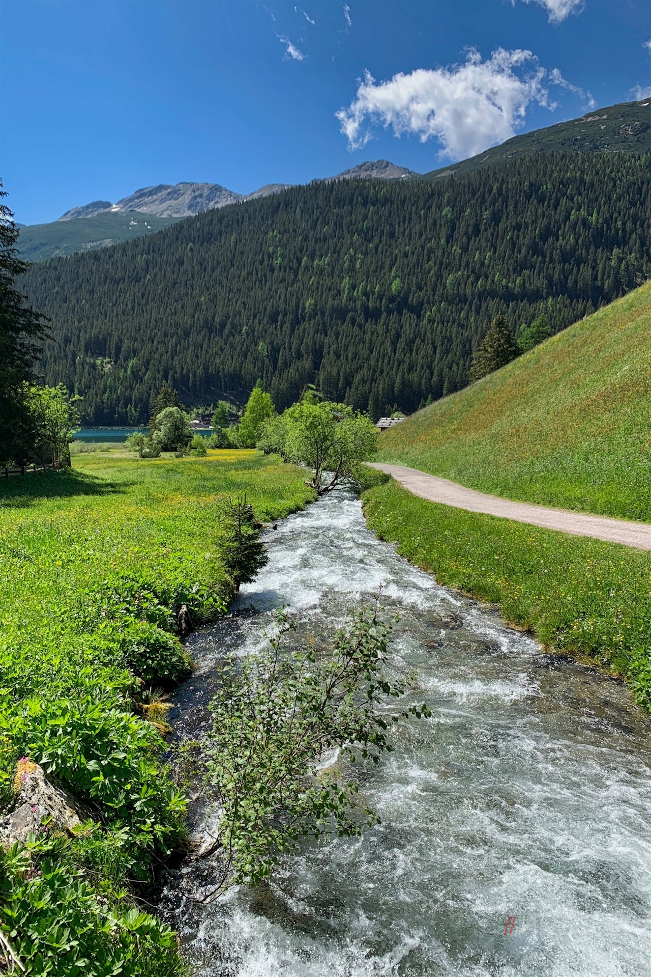 Um seine Ufer zieht sich ein nahezu ebener, teils breiter, teils schmaler Spazierweg, auf dem sich immer neue Perspektiven auf seine schimmernden Wasser und die umliegende Bergwelt öffnen.