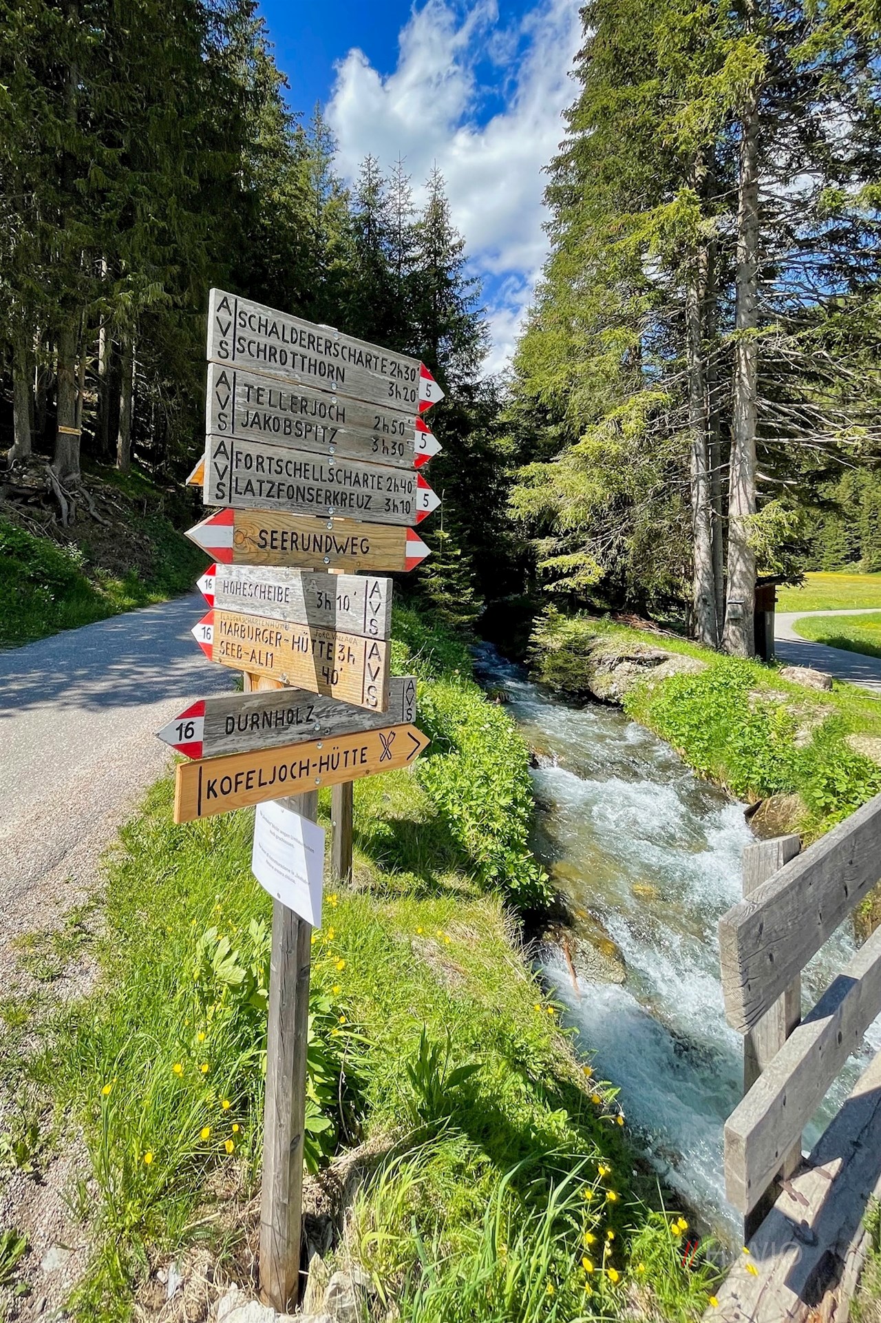Die Wanderung um den Durnholzer See beginnt auf dem Wanderparkplatz unterhalb des Bergdorfes Durnholz im Talschluss des Durnholzer Tals.
