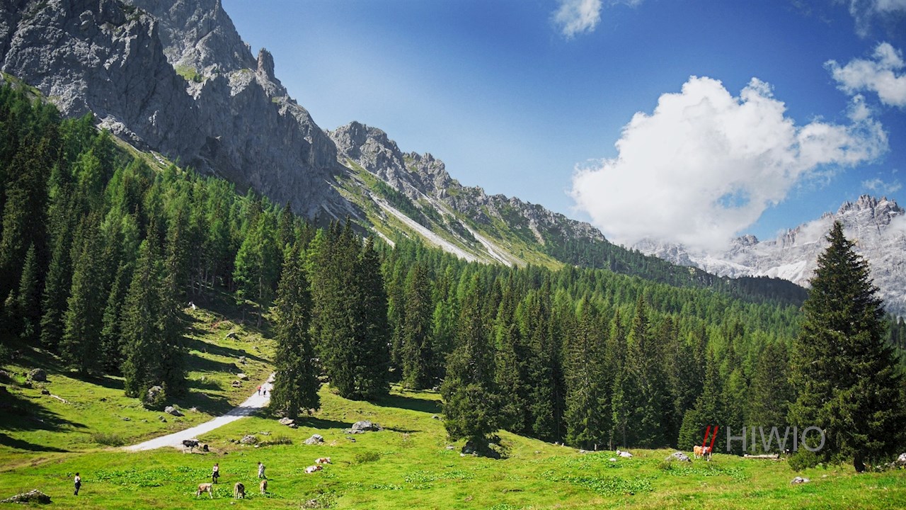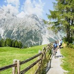Dort wechseln wir auf den Radweg in Richtung Sexten, dem wir – teils auf Schotter, teils asphaltiert - bis zur Talstation des Rotwandwiesenliftes in Sexten/Moos folgen.