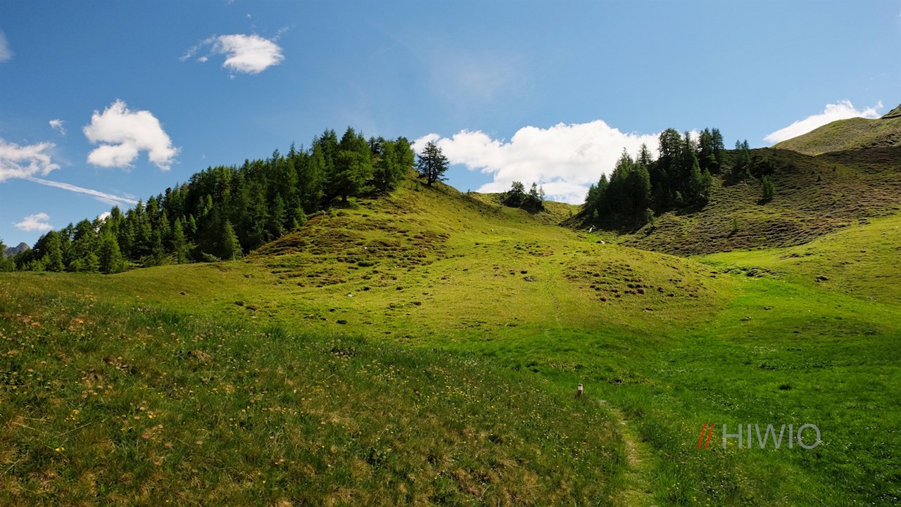 Am kleinen Biotop Flemmsee zweigt rechts der Wiesensteig 20A auf den nunmehr nahen, bereits seit Längerem sichtbaren Eggespitz ab.