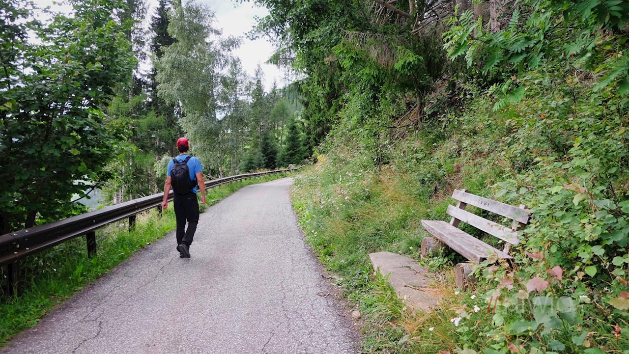 Die Elisabethpromenade nimmt auf dem weitläufigen Parkplatz der Talstation Paolina in der Ortschaft Siedlung Karersee ihren Anfang.