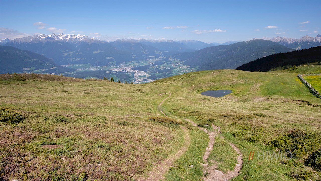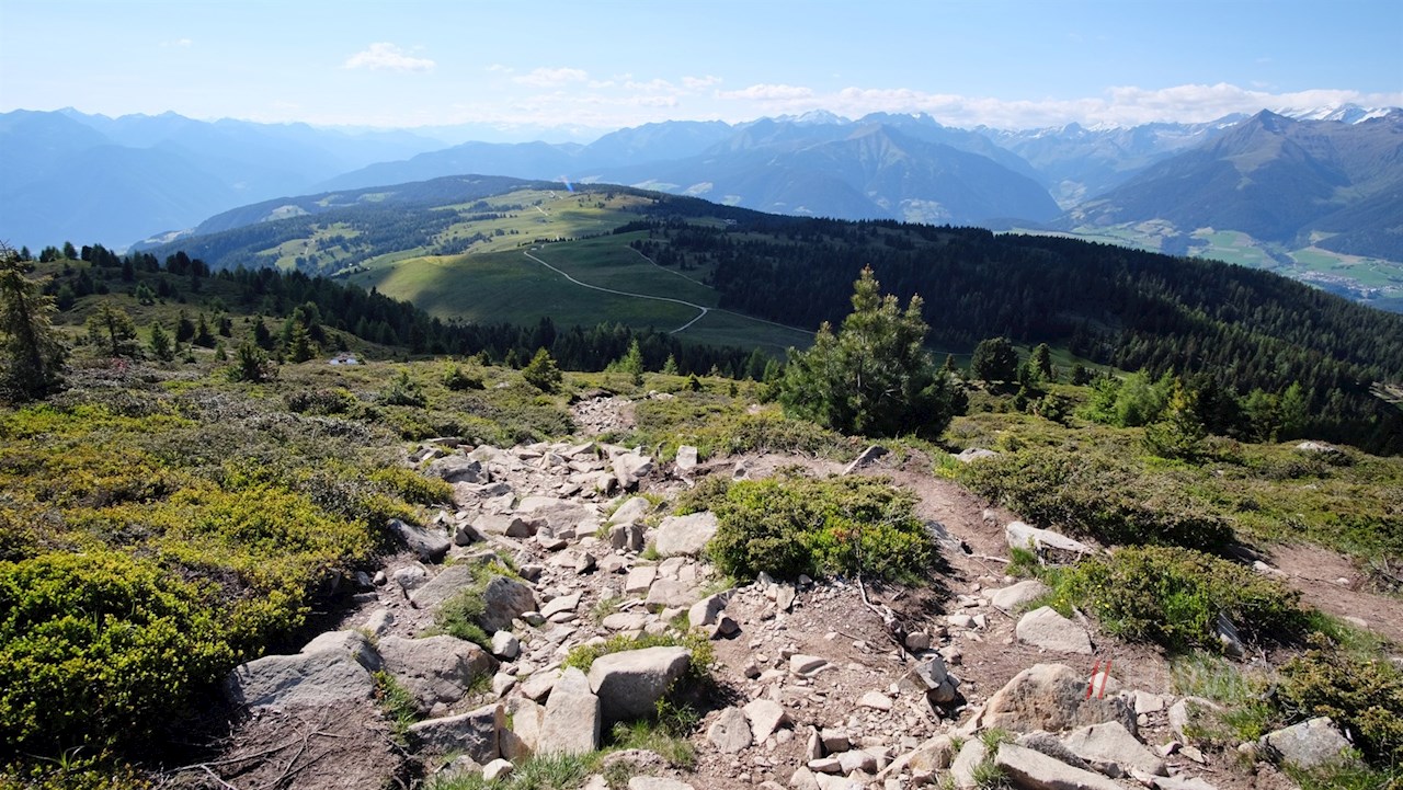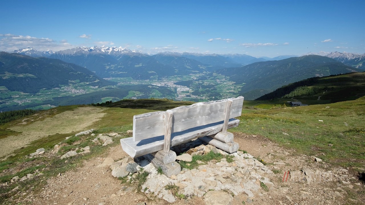 Hinter der gemütlichen Walderalm schlängelt sich der Weg zur nahen Waldgrenze weiter und steigt dann sanft durch aussichtsreiche Wiesen- und Heidehänge auf das Astjoch an. Neben dem hohen Gipfelkreuz entfaltet sich schließlich ein atemberaubender Rundblick auf das Pustertal, die Zillertaler Alpen, das Eisacktal und die Dolomiten. Ein Panoramapunkt verrät die Namen einiger der ringsum aufragenden Bergspitzen, von denen insbesondere der Hochfeiler, der Heiligkreuzkofel und der Peitlerkofel ins Auge stechen mögen.