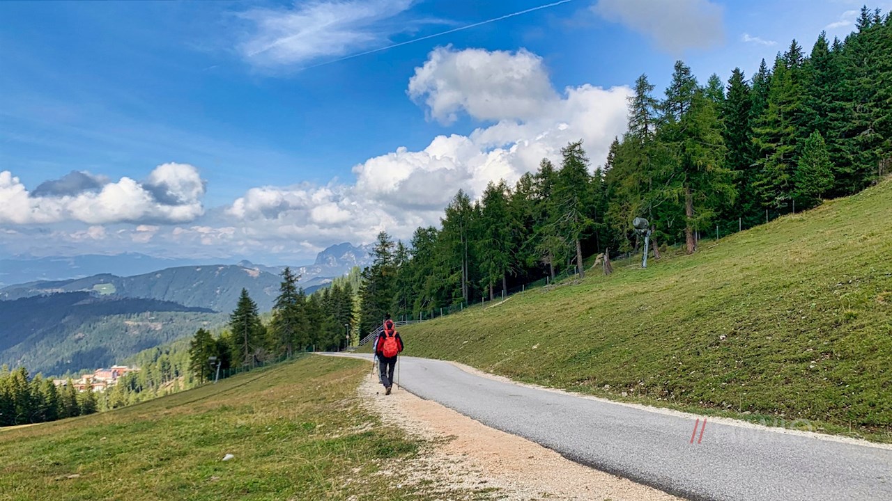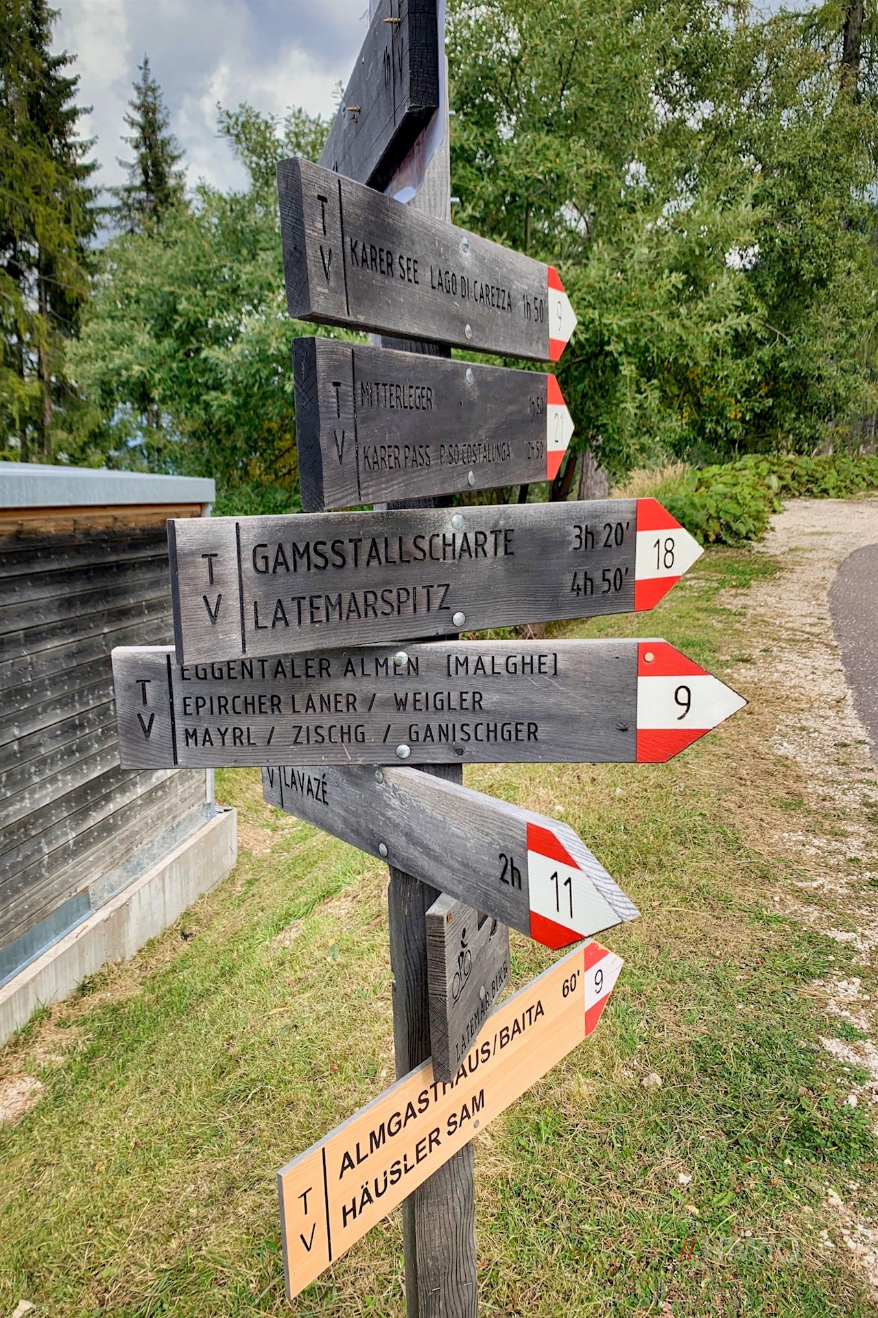 Von der Epircher Laner Alm führt der breite Weg Nr. 18 in einer knappen halben Stunde zum Ausgangspunkt in Obereggen zurück.
