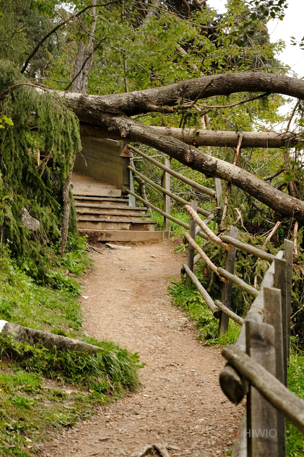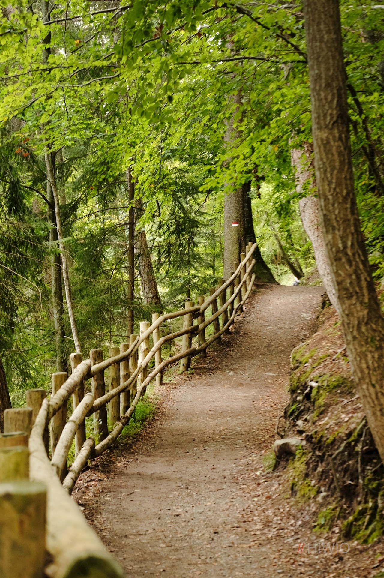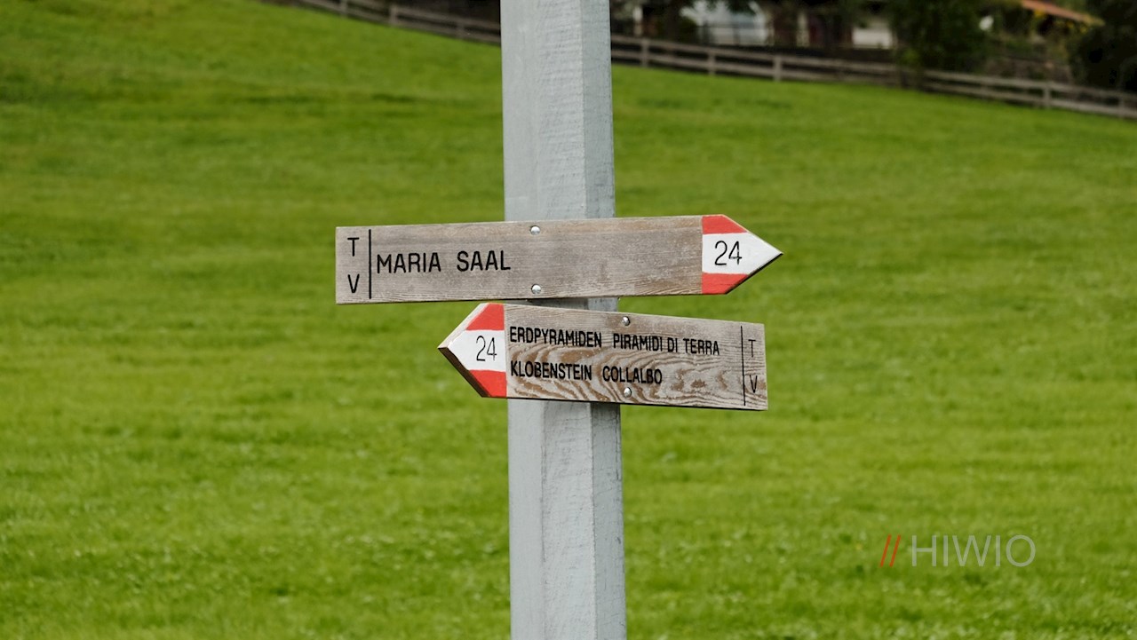 Dem Wegweiser Nr. 24 in Richtung Erdpyramiden folgend, wandert man zunächst ein kurzes Stück die Straße entlang. Hinter dem einladenden Café Erdpyramiden zweigt rechts ein sanfter Promenadenweg ab.