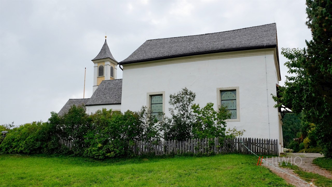 Sein pittoreskes, von grünen Wiesen umrahmtes Kirchlein aus dem 17. Jahrhundert ist ein beliebtes Wallfahrts- und Ausflugsziel. Neben zahlreichen Gebetstafeln birgt es auch ein einzigartiges Fresko: Als der Gadertaler Alexander Dejaco (1877-1936) unverletzt aus dem Ersten Weltkrieg heimgekehrt war und zur Sommerfrische auf dem Ritten weilte, bemalte er voller Dankbarkeit einen Rundbogen mit einer Muttergottes samt Regenschirm – eine wörtliche Anspielung auf eines der ältesten Mariengebete, das mit den Worten „Unter deinen Schutz und Schirm fliehen wir,/o heilige Gottesgebärerin“ beginnt.