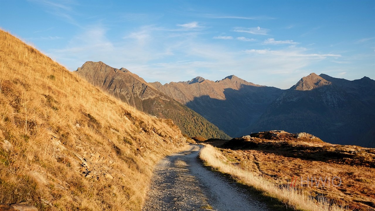 Nach der gemütlichen Einkehr in die Flecknerhütte führt der bereits bekannte Wege zum Ausgangspunkt zurück. Auf dem Rückweg öffnen sich malerische Ausblicke auf die Jaufenspitze.