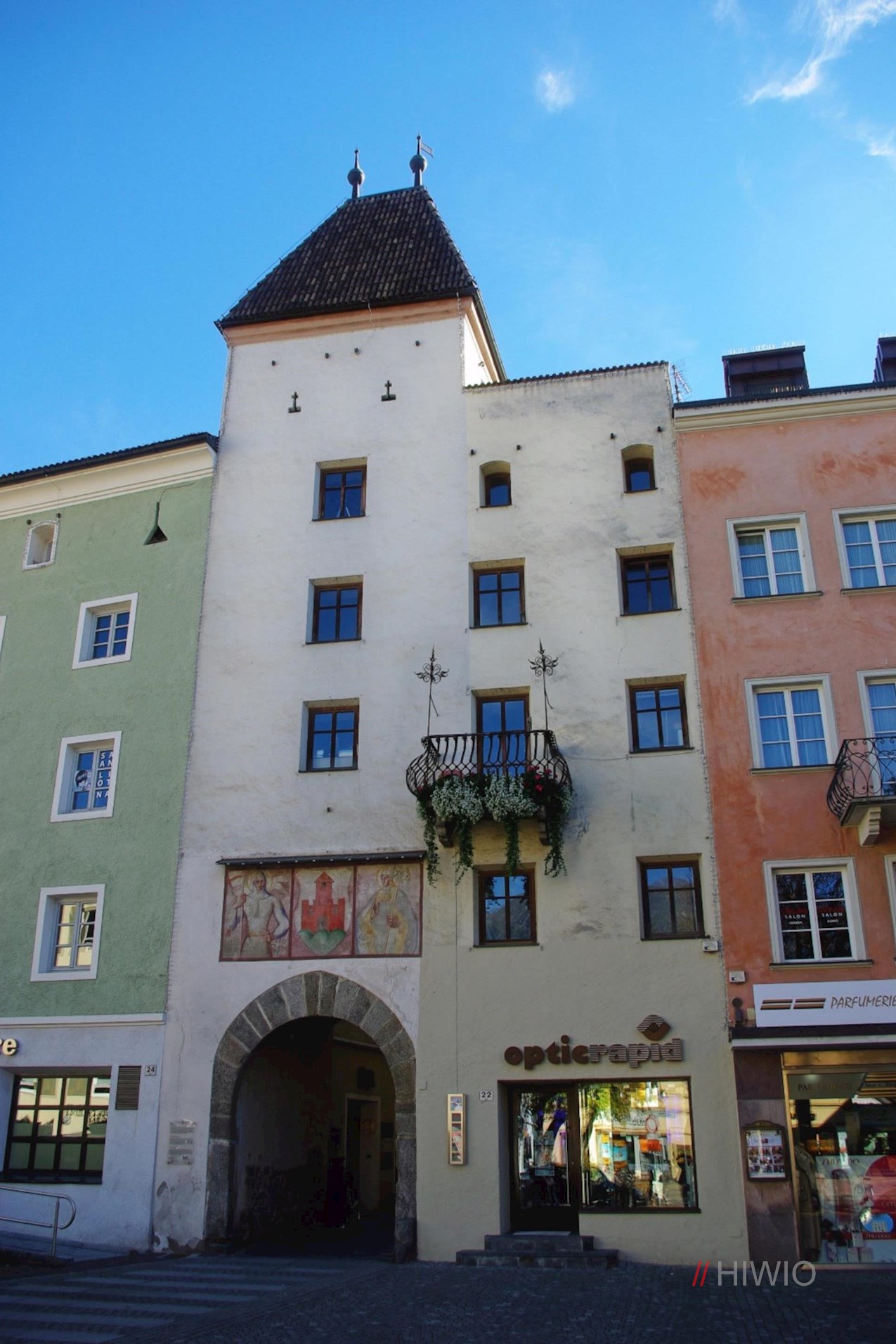 Das nach Norden ausgerichtete Florianitor auf halber Höhe der Stadtgasse ist eines der vier erhaltenen Brunecker Stadttore. Sein Name leitet sich von einer Figur des heiligen Florian ab, die dereinst einen Brunnen schmückte.