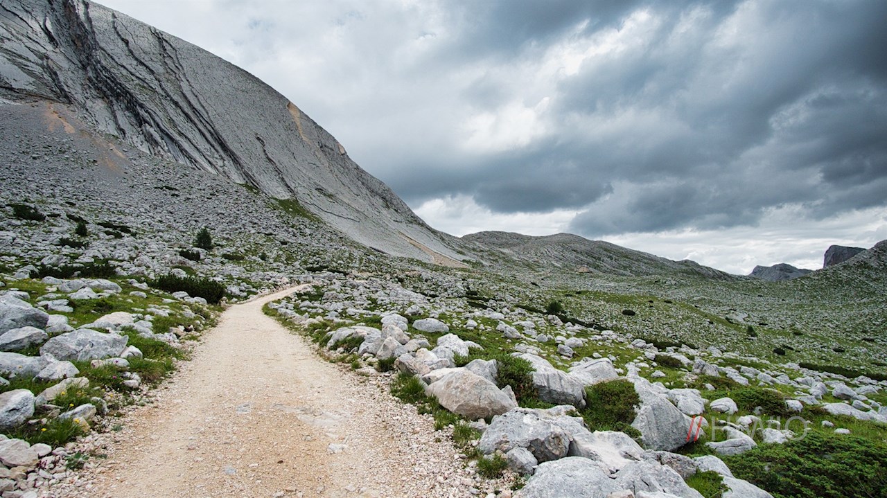 Vom Berggasthaus folgt man zunächst dem steilen, dicht an den Steilhang gedrängten Serpentinenweg Nr. 7 in Richtung Senes.
