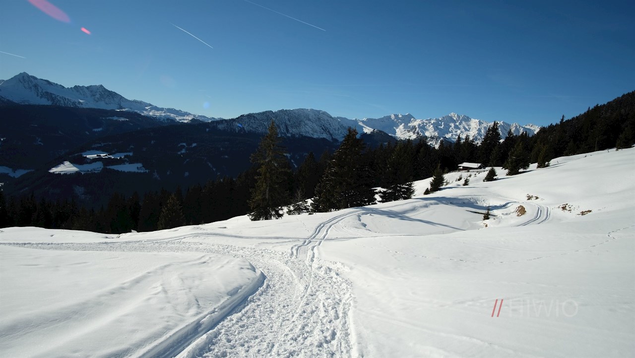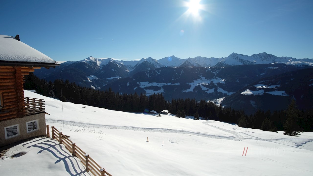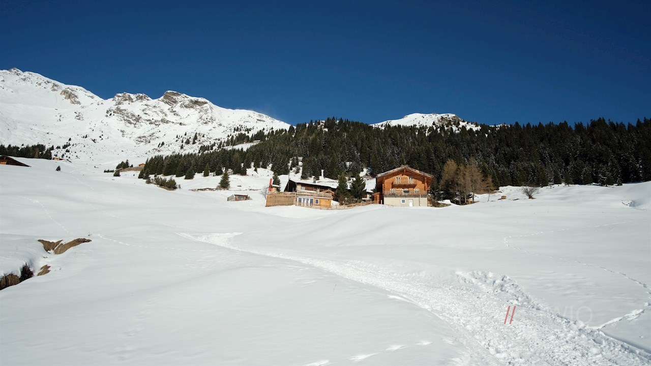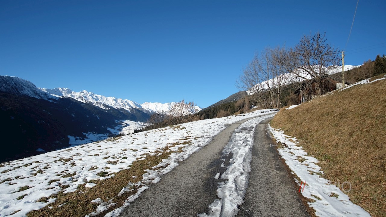 Die Winterwanderung zur Freundalm nimmt im sonnenverwöhnten Dorf Obertelfes bei Sterzing ihren Anfang.