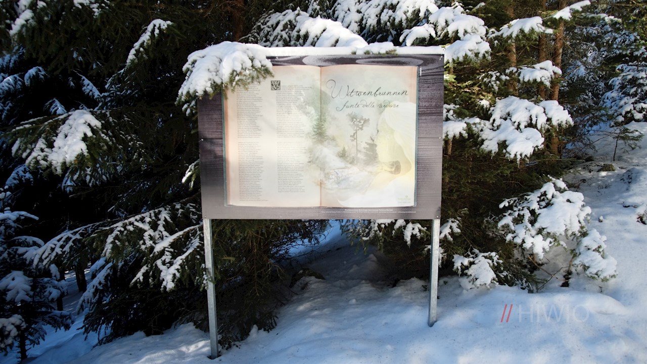 Unterwegs kommt man am sagenumwobenen „Witwenbrunnen“ vorbei. Ein poetisch gestaltetes Schild erzählt die schaurig-schöne Sage, laut der an ebendieser Stelle drei Frauen die Botschaft vom Tod ihrer frevelhaften Männer ereilte. Da die Frauen hier vom Ableben ihrer Männer erfuhren, trägt der Brunnen noch heute diesen Namen.