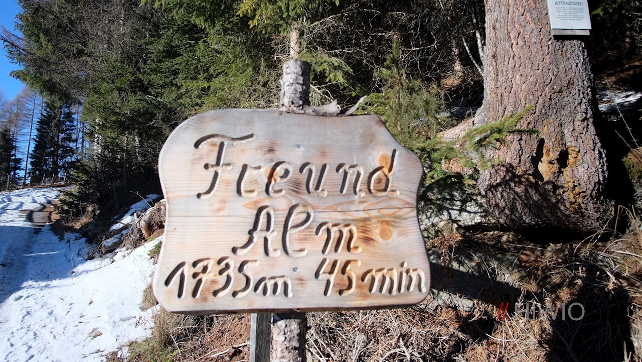 Den Wegweisern mit der Aufschrift „Freundalm“ folgend, wandert man zunächst auf der asphaltierten Höfestraße zum eigentlichen Beginn des Winterweges hoch. Hier finden sich eventuell weitere Parkmöglichkeiten.