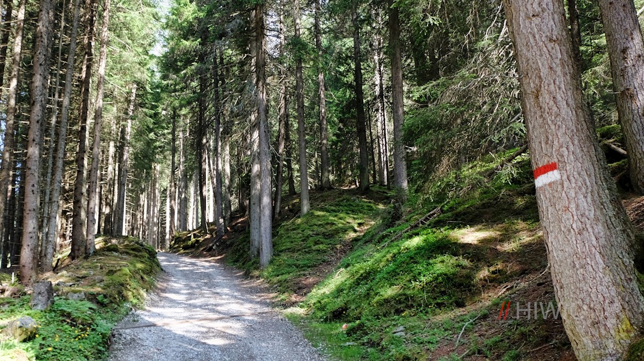Der Beschilderung Nr. 5 in Richtung Telfer Almen bzw. Freundalm folgend, wandert man auf der asphaltierten Höfestraße zum eigentlichen Beginn des Wanderweges an einer kleinen Holzbrücke hoch. Hier finden sich eventuell weitere Parkmöglichkeiten.