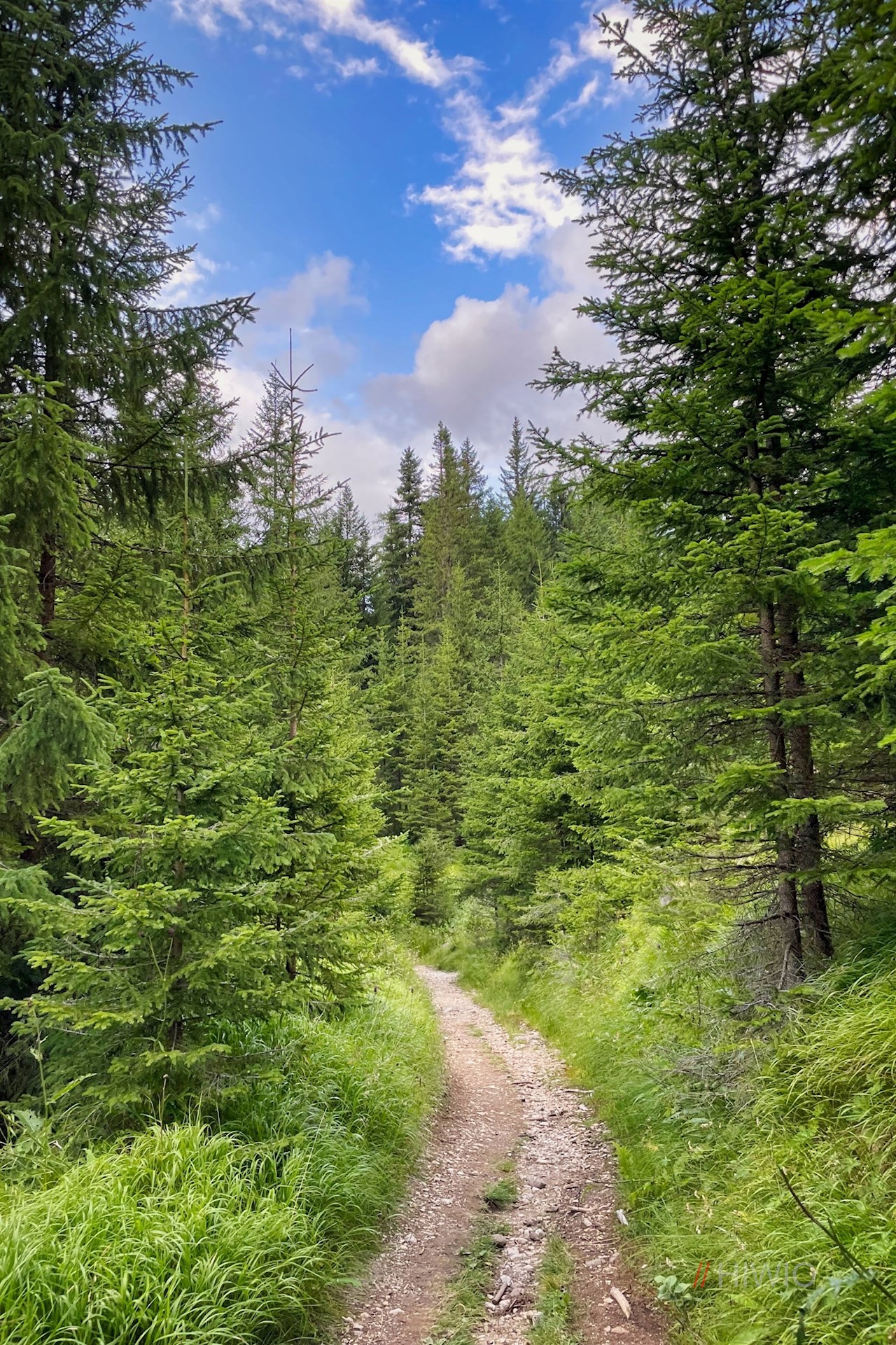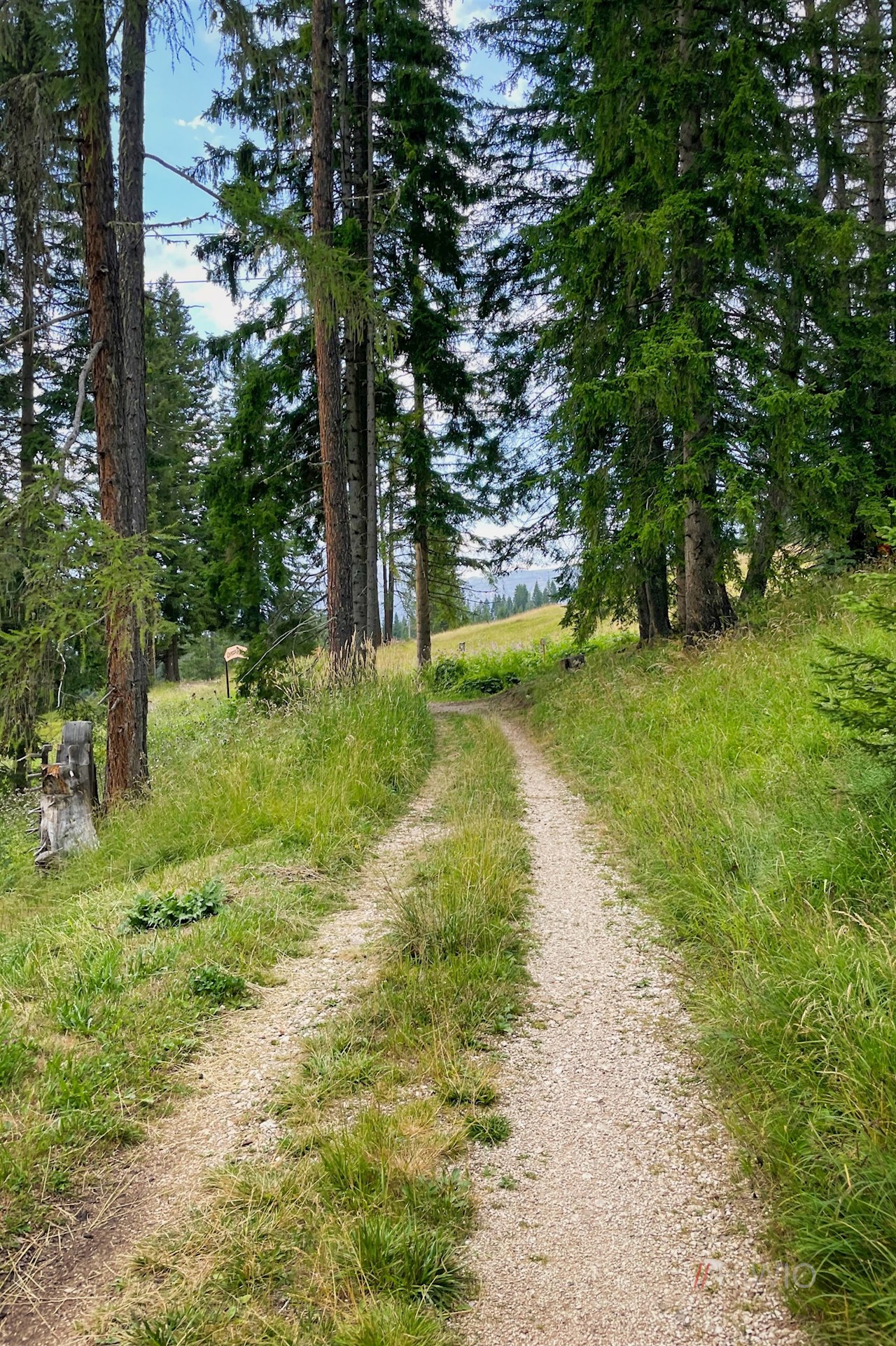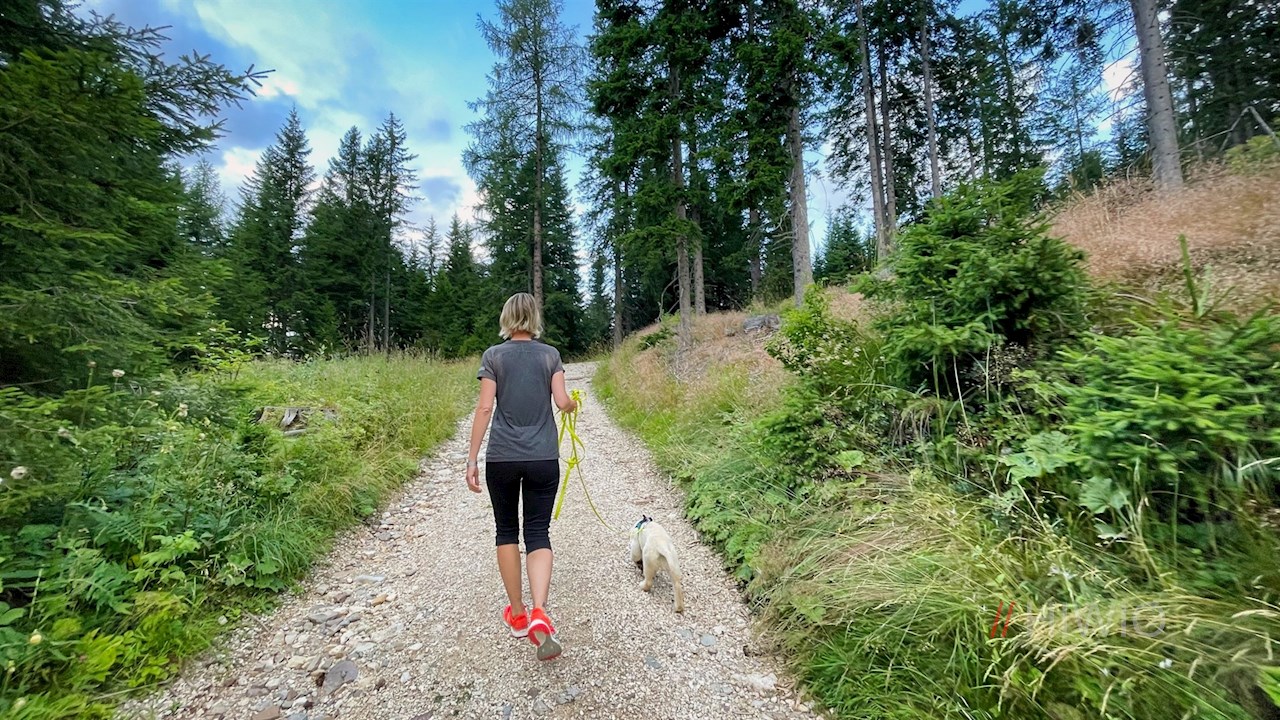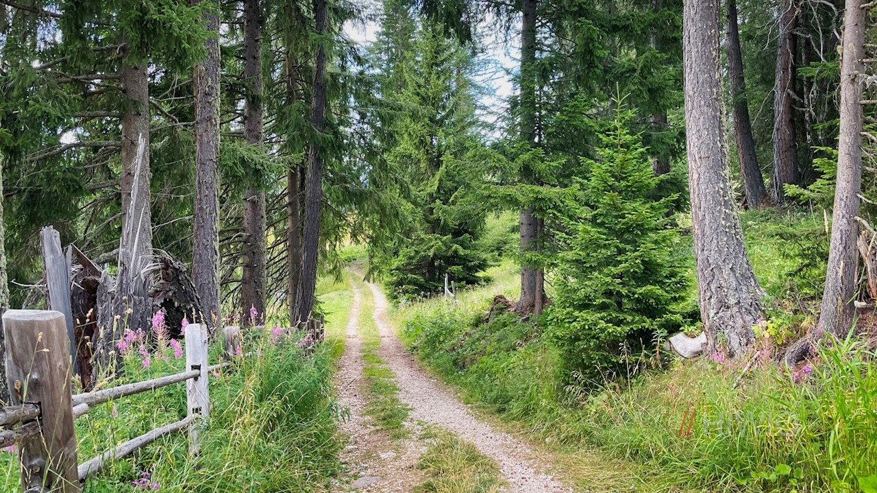 Am Parkplatz zweigt der Weg Nr. 1A zur Frommeralm ab. Er zieht sich ohne nennenswerte Höhenunterschiede durch den harzduftenden Nadelwald, der hie und da vom Zwitschern der Vögel erfüllt wird.