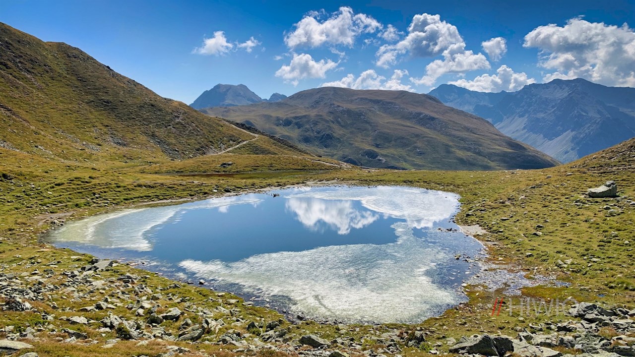 Vom kleinen Bergsee führt der nahezu eben verlaufende Wanderweg 12A vor der Kulisse des Sarntals und der kühn abfallenden Penserjochstraße zum Ausgangspunkt am Penser Joch zurück, auf dem das Gasthaus Alpenrose zur Einkehr lädt.