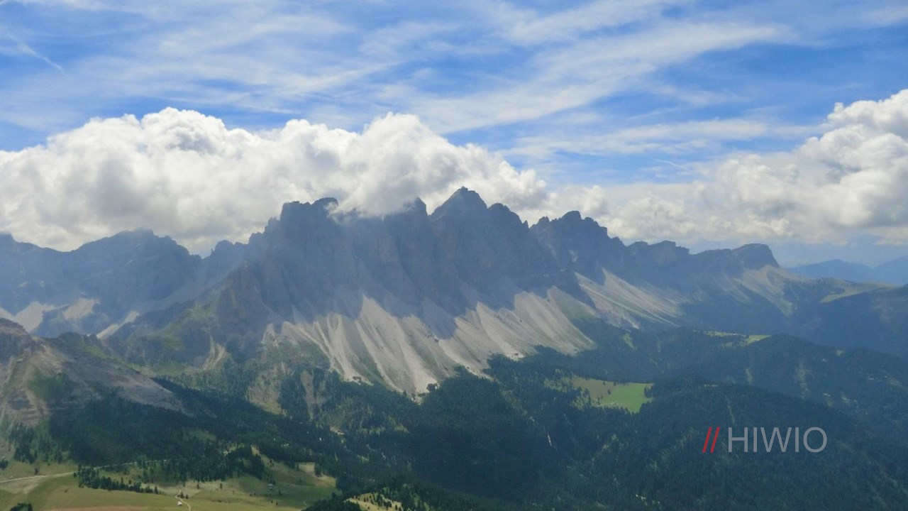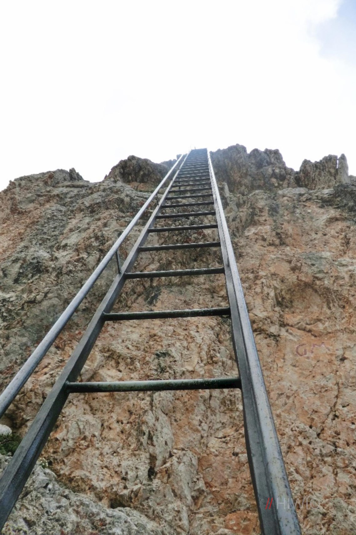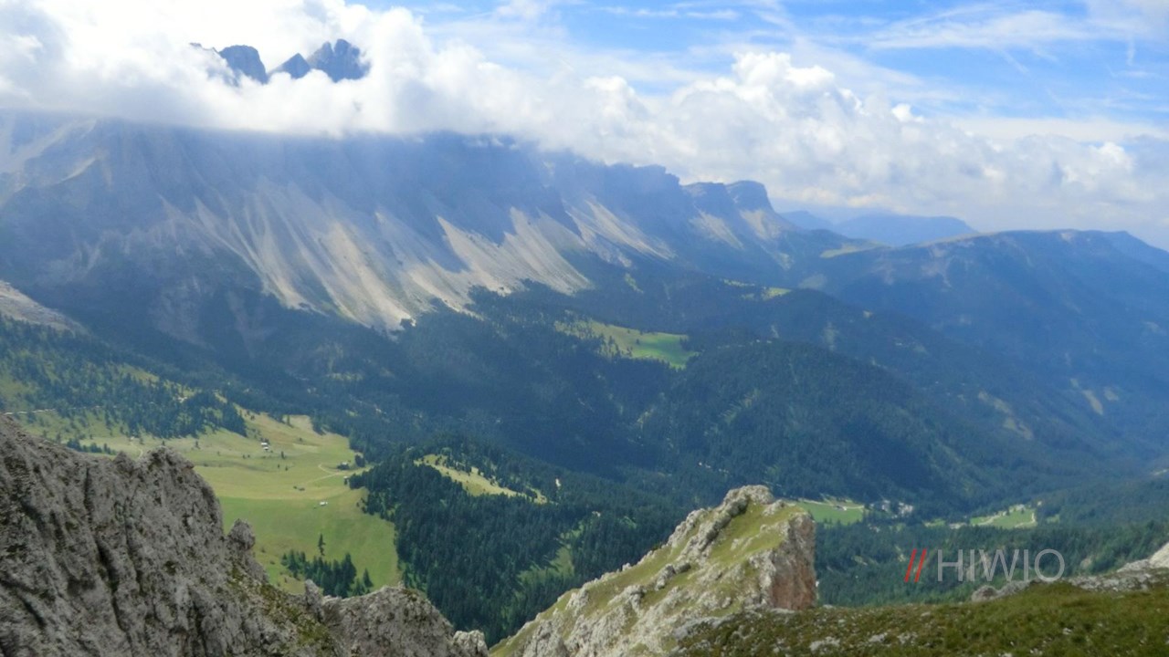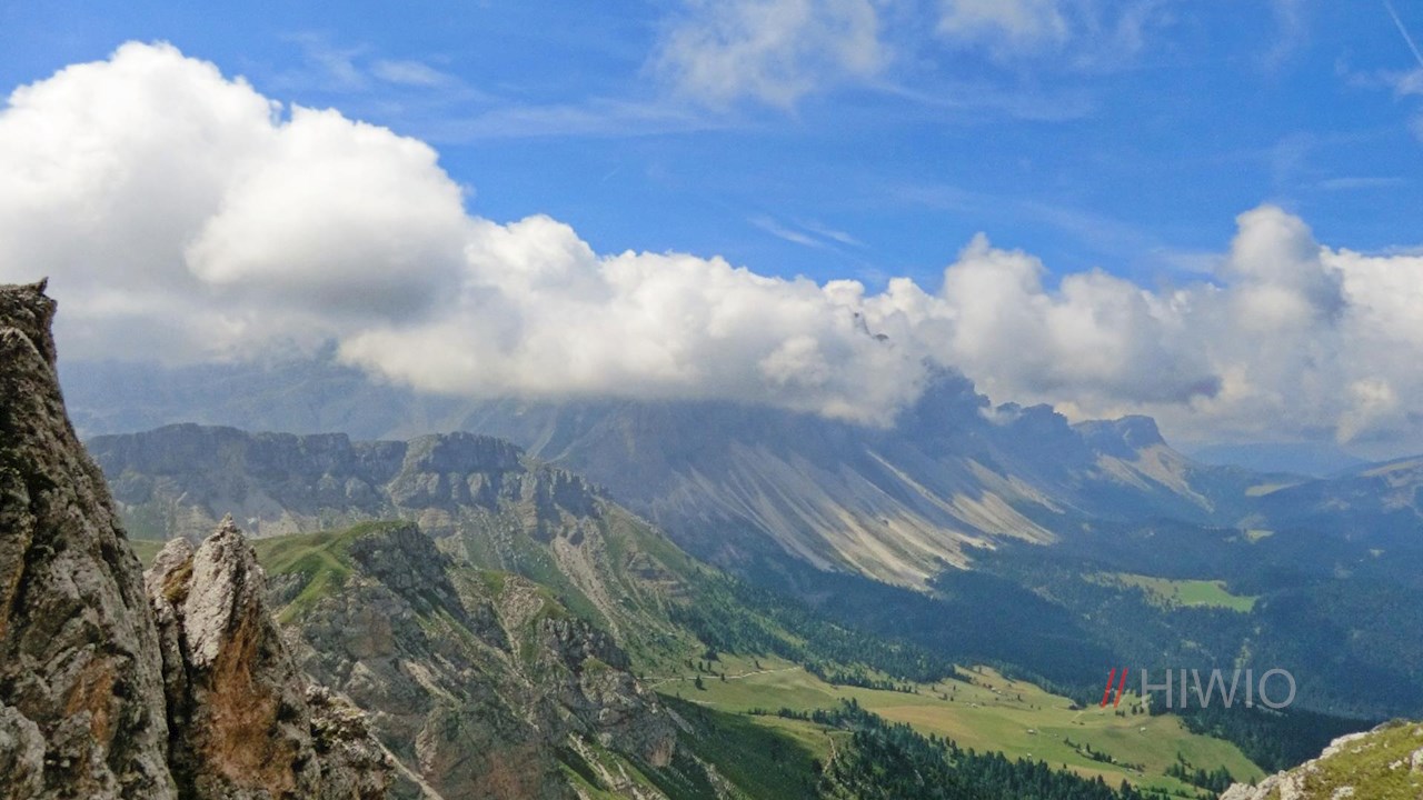 Über Almwiesen tritt man so in das karge, von Geröll- und Wiesenpfaden geprägte Reich der Aferer Geisler ein. Nun beginnt der teilweise gesicherte Teil der Wanderung, der über einige ausgesetzte Passagen führt und mit kurzen Kletterpartien über teils schroffe und abfallende Felswände aufwartet.