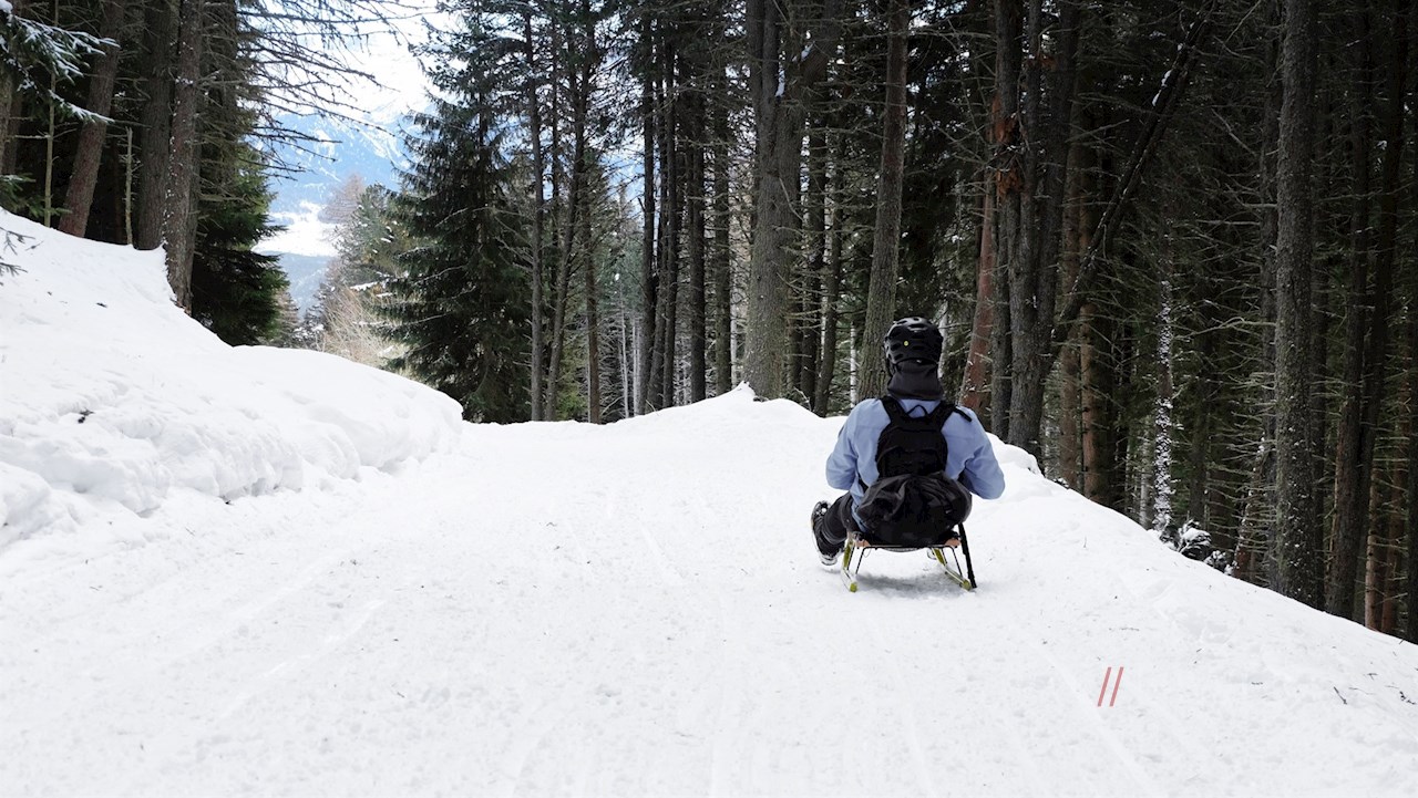 Neben der Rodelbahn vom Speckboden führt auch die Rodelbahn vom Sambergerhof zur Gasserhütte. Der Anstiegsweg ist zwar etwas länger, wartet dafür aber mit schöneren Ausblicken und einer längeren Abfahrt auf.