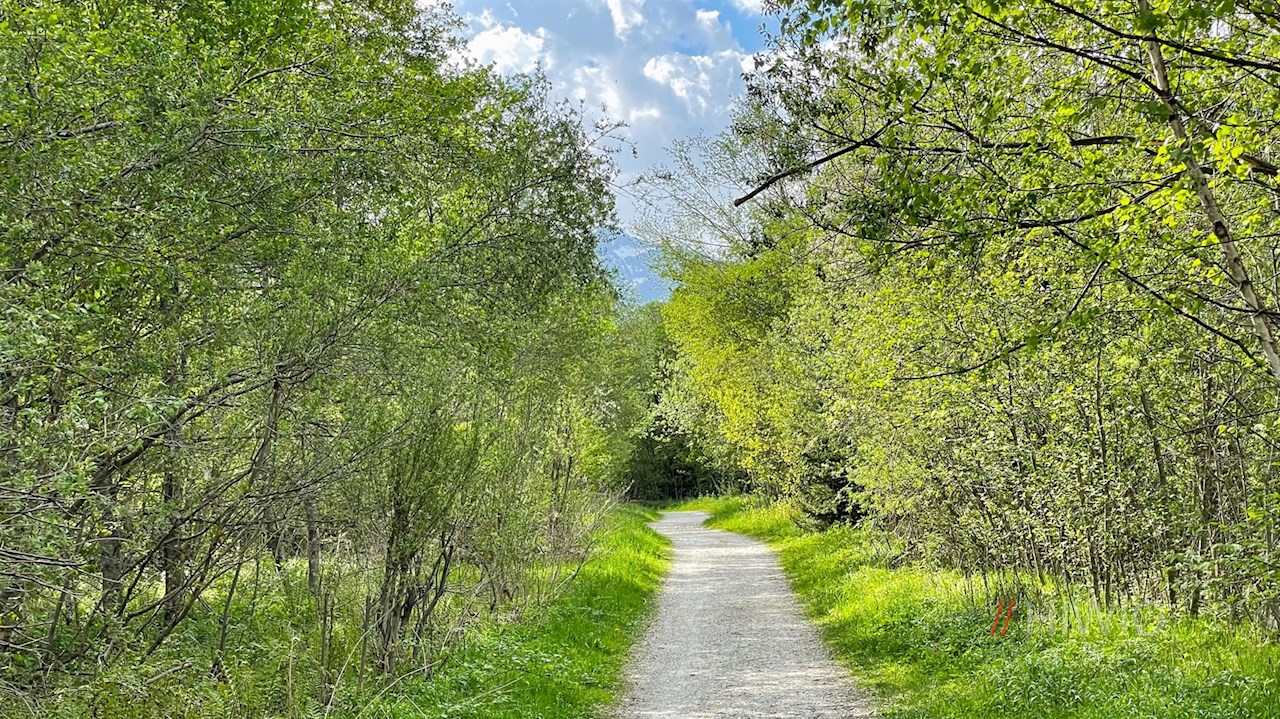 Er führt durch Wiesen und lichten Auwald und öffnet dabei schöne Ausblicke auf Telfes und die dahinter aufragenden Telfer Weißen.