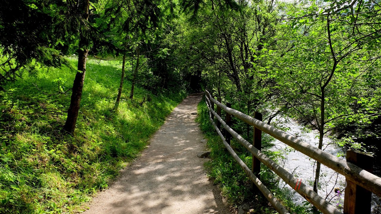Dem Wegweiser in Richtung Gilfenklamm folgend, wandert man zunächst entlang des Ratschinger Baches zum hölzernen Eintrittshäuschen. Dahinter bahnt sich der nunmehr schmale, von Bäumen und Sträuchern umstandene Pfad seinen Weg zur vielbesuchten Schlucht.