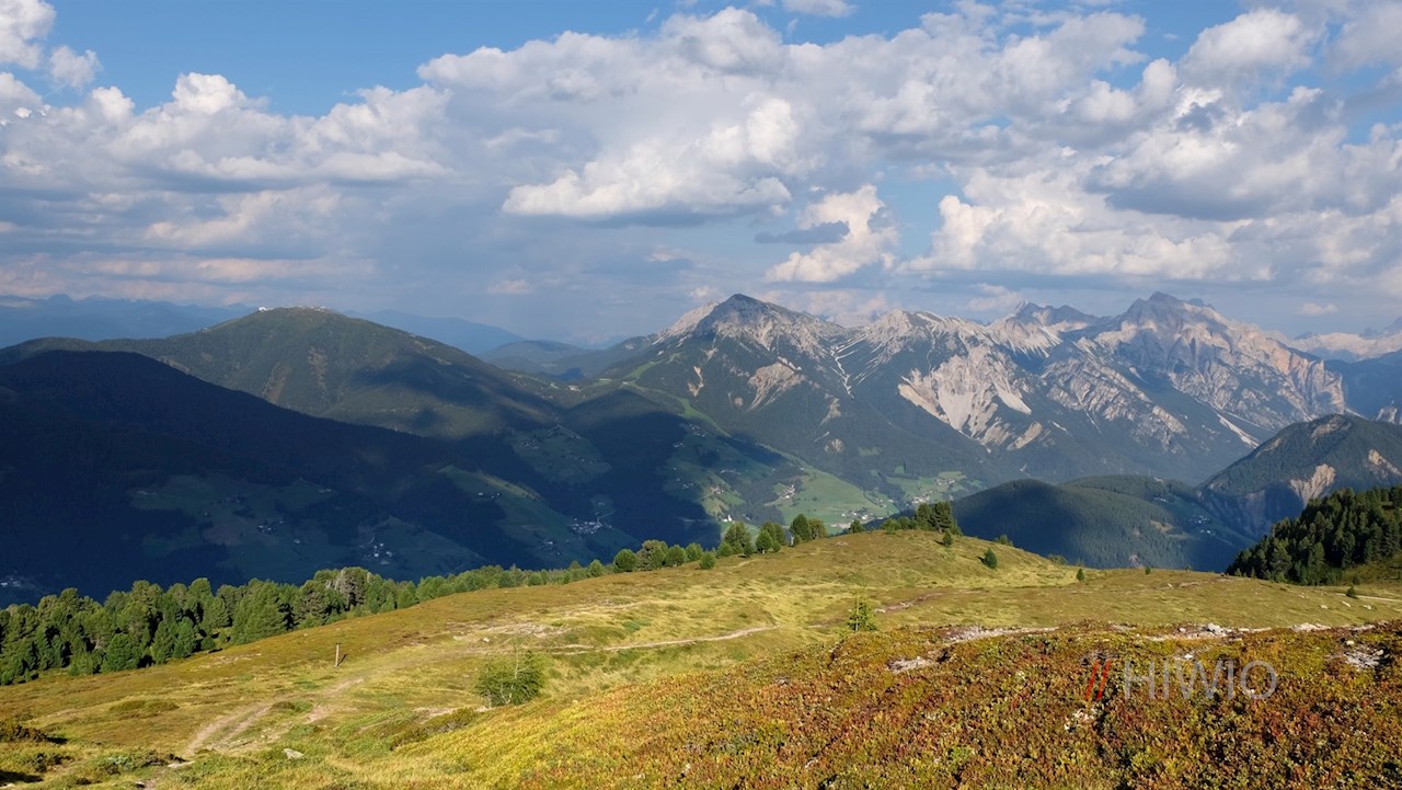 Hinter der Welschellener Alm zieht sich der Weg Nr. 26 zur nahen Waldgrenze hoch, hinter der sich weite, sanft gewellte Almwiesen ausdehnen. Sie bilden einen scharfen Kontrast zu den gegenüberliegenden Felswänden der Dolomiten. Wenig später zweigt der Trail rechts ab. Nun folgt der einzig nennenswerte Stich auf den ungemein aussichtsreichen Col da Lech, auf dem sich ein atemberaubendes Panorama entfaltet.