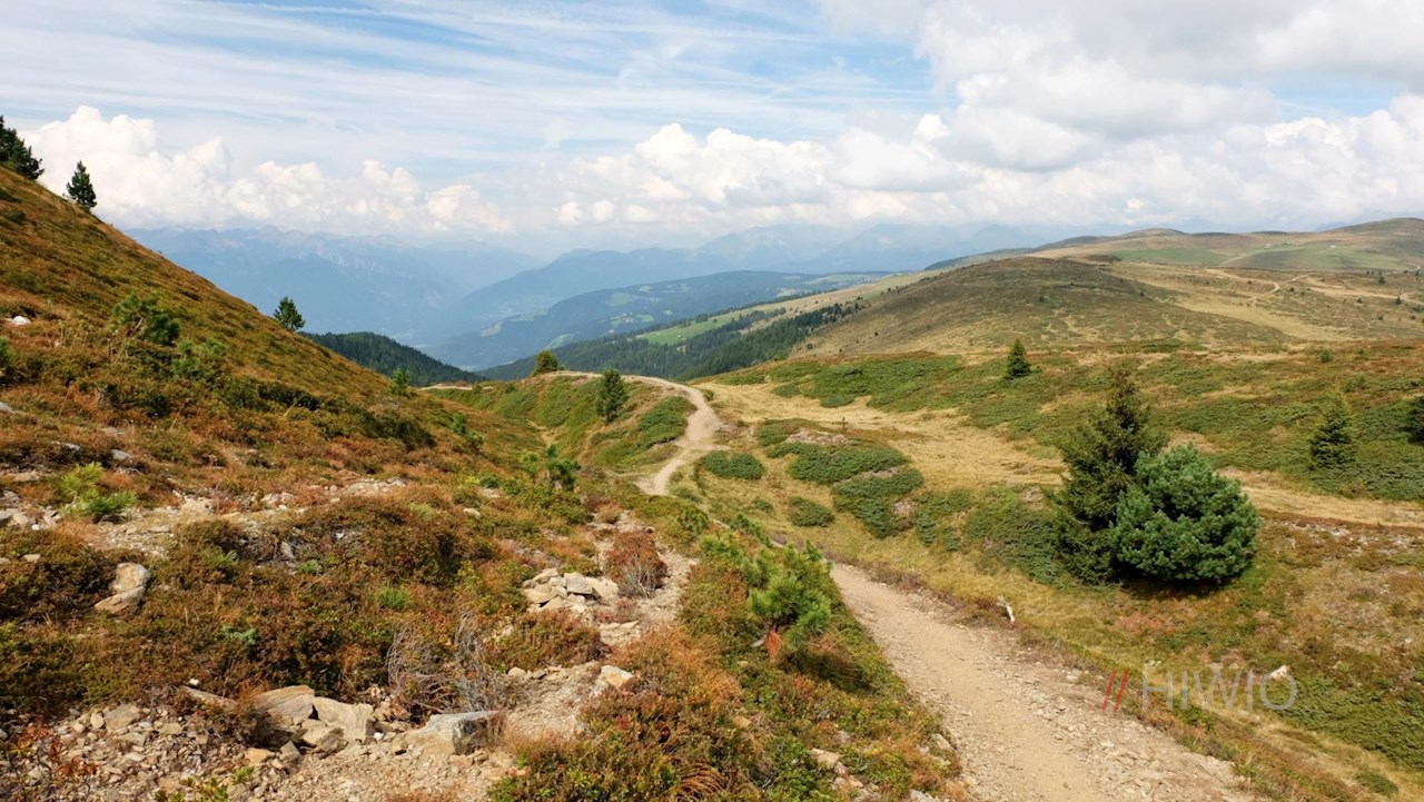 Am Wanderparkplatz schlägt man den Weg Nr. 2 ein. Er führt durch die malerischen Campiller Wiesen zur Genaider Alm auf 1.950 m Höhe. Von dort schlängelt sich der Weg zur Astalm und dem dahinter liegenden Jakobstöckl weiter, an dem sich ein malerischer Ausblick auf das Pustertal und Bruneck im Besonderen entfaltet.