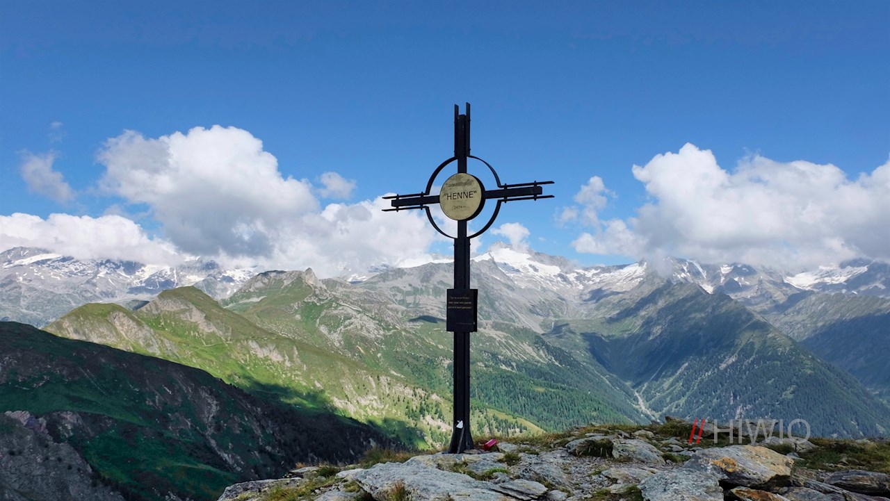 Auf dem 2.277 m hohen, am Kellerbauerweg gelegenen Gorner Joch entfaltet sich ein malerischer Ausblick ins Mühlwalder Tal und auf die ringsum aufragende Bergwelt – und auch das Gipfelkreuz der nunmehr nahen Henne ist bereits zu sehen.