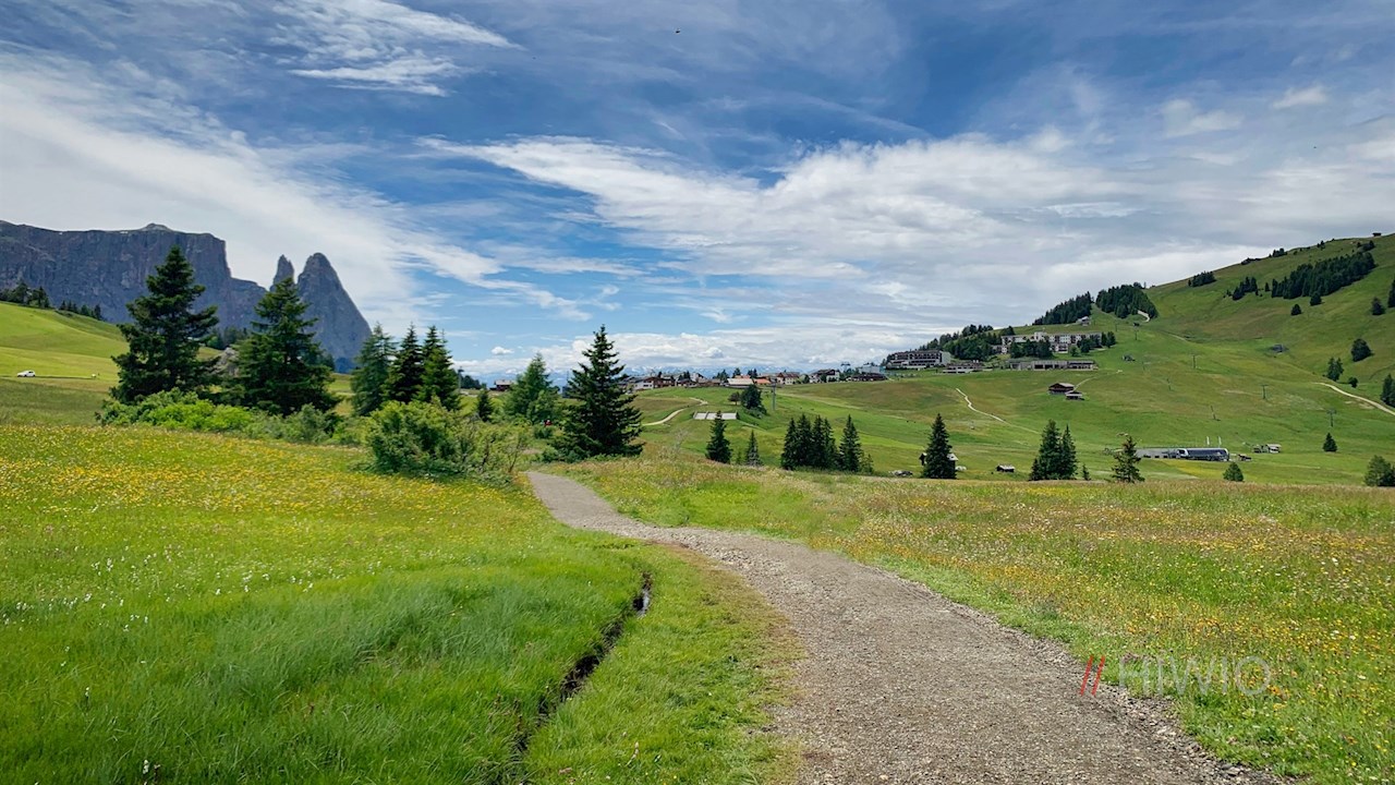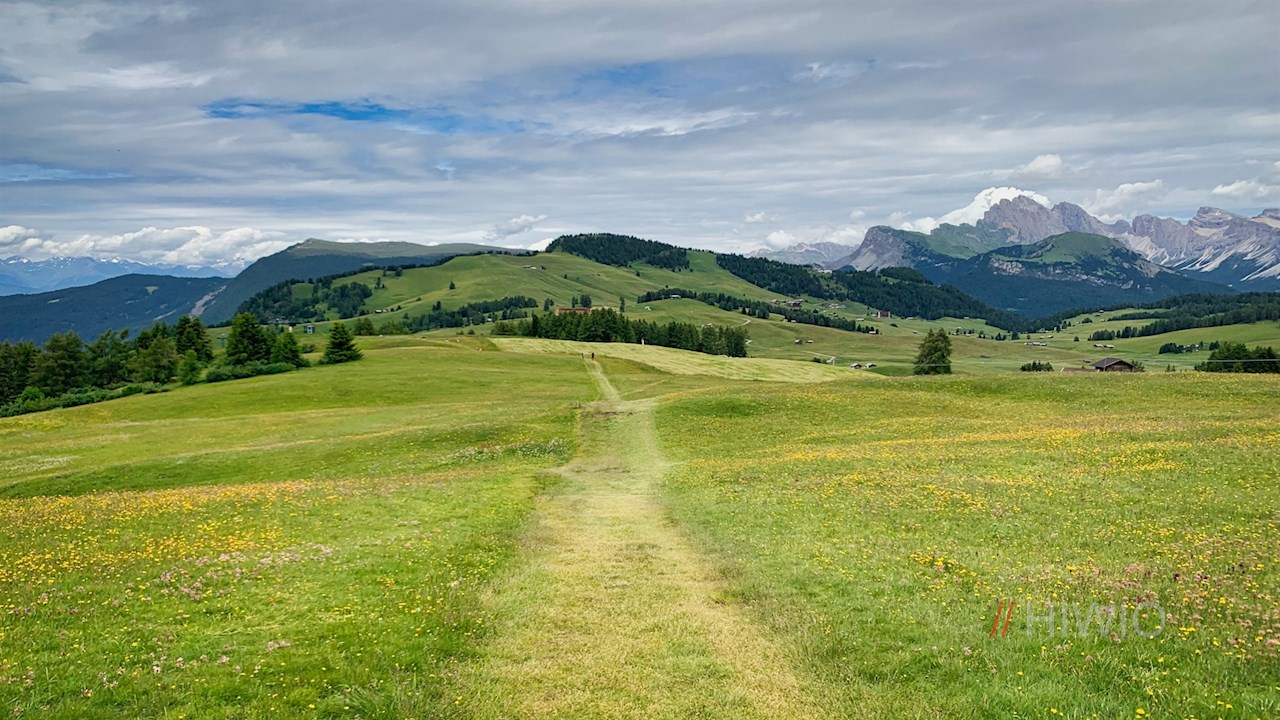 Von Compatsch führt der breite Wanderweg Nr. 30 im leichten Auf und Ab durch die sanften, von einzelnen Bäumen bestandenen Almwiesen, die sich von Mai bis Juli in ein verträumtes, bunt leuchtendes Blumenmeer verwandeln. Unter anderem gedeihen in ihnen die entzündungshemmende Arnika, der stärkereiche Schlangenknöterich oder der lehmanzeigende Gewöhnliche Klappertopf.