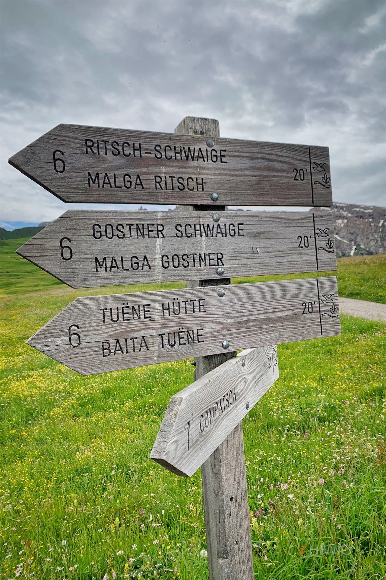 Die Wanderung zur Gostner Schwaige beginnt an der Bergstation der Seiser Alm Bahn in Compatsch.