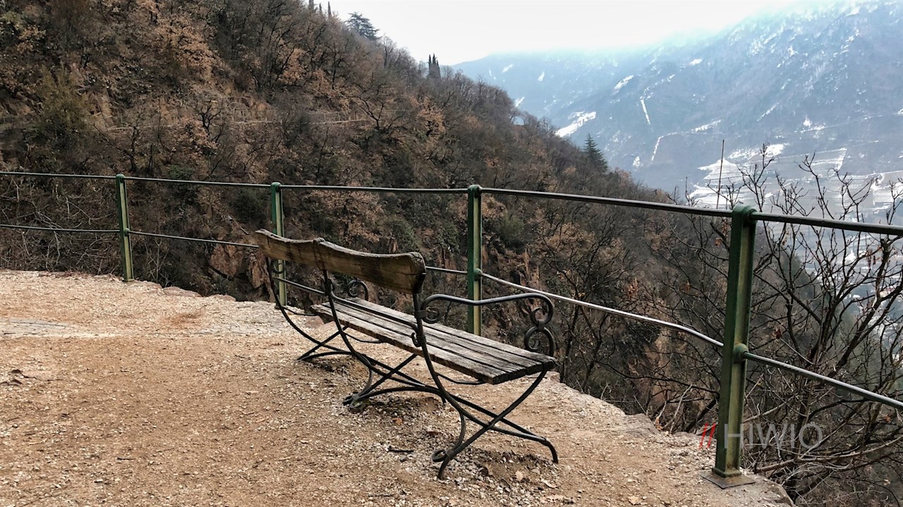 Der Wanderweg verläuft im Zick-Zack und leichter Steigung den Guntschnaberg hinauf, vorbei an Palmen, Kräutern und Olivenbäumen. Zahlreiche Kakteen sind hier beheimatet sowie Vögel und Fledermäuse, die entlang der Promenade Unterschlupf an den wärmenden Felswänden des Bozner Quarzporphyrs finden. Immer wieder lichtet sich der Blick Richtung Bozen, der Blick fällt auf die vielen Wohnbauten, welche das einstige Gries mit der historischen Altstadt von Bozen haben verschmelzen lassen. An einem Aussichtspunkt veranschaulicht dies ein Foto des alten Gries, das um 1930 aufgenommen wurde.