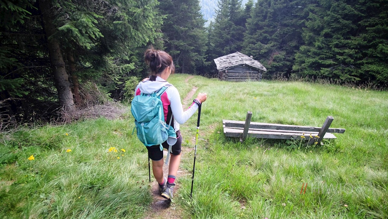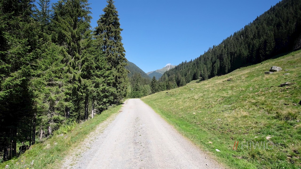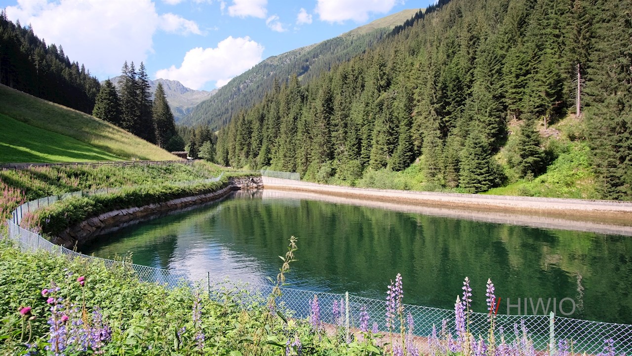 Vom Wanderparkplatz folgt man der asphaltierten Straße zum ganzjährig bewirtschafteten Karbacherhof, hinter dem die Wanderung in einen breiten Schotterweg übergeht. Er führt im leichten Anstieg am lupinenumsäumten Staubecken des Gsieser E-Werks vorbei durch das abgeschiedene Karbachtal.